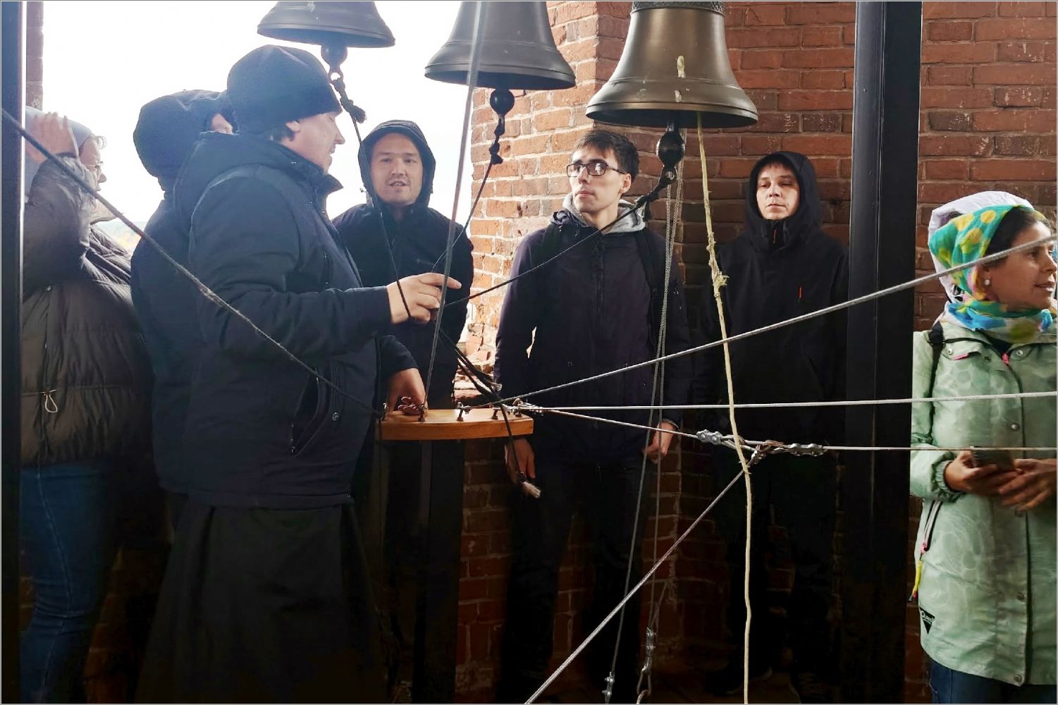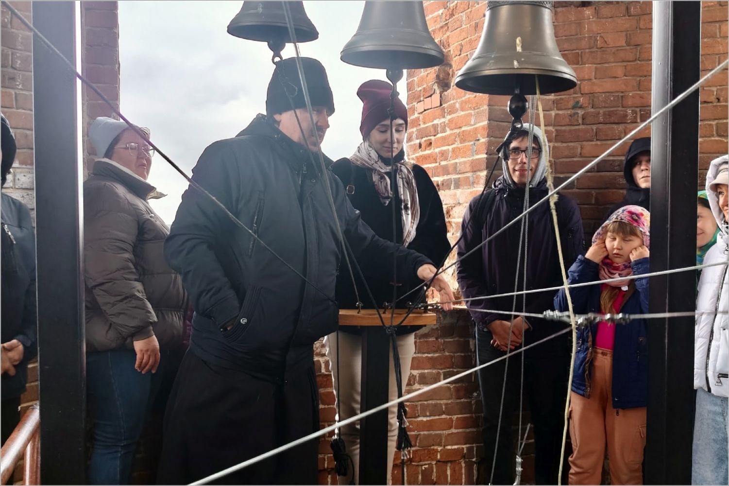 Во время экскурсии присутствующие услышали много интересной информации об истории храма и села Боровецкое, поднялись на колокольню, где узнали о нюансах колокольного звона, об устроении звонницы и служении звонаря. Там же прошёл небольшой мастер-класс, после которого все желающие могли попробовать позвонить в колокола под руководством звонаря.