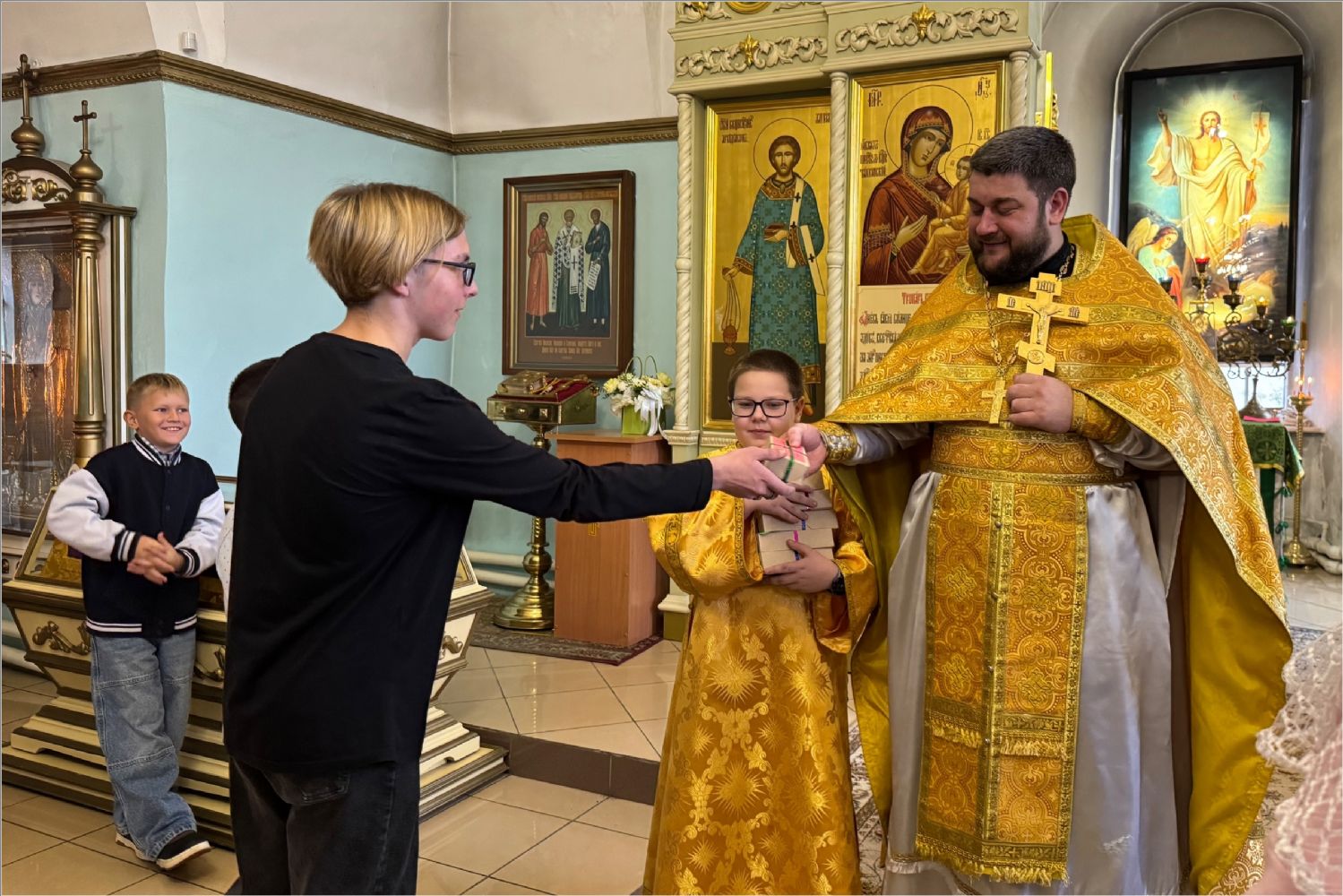 В храме святителя Николая Чудотворца города Мензелинска празднование началось с общей молитвы и поздравлений. Особые слова любви и благодарности были обращены к настоятелю собора иерею Роману Храмутичеву, который 14 октября в память преподобного Романа Сладкопевца отмечал День Ангела. Дети воскресной школы, искренне любящие и почитающие своего наставника, преподнесли ему трогательные подарки, выполненные с любовью и заботой.
