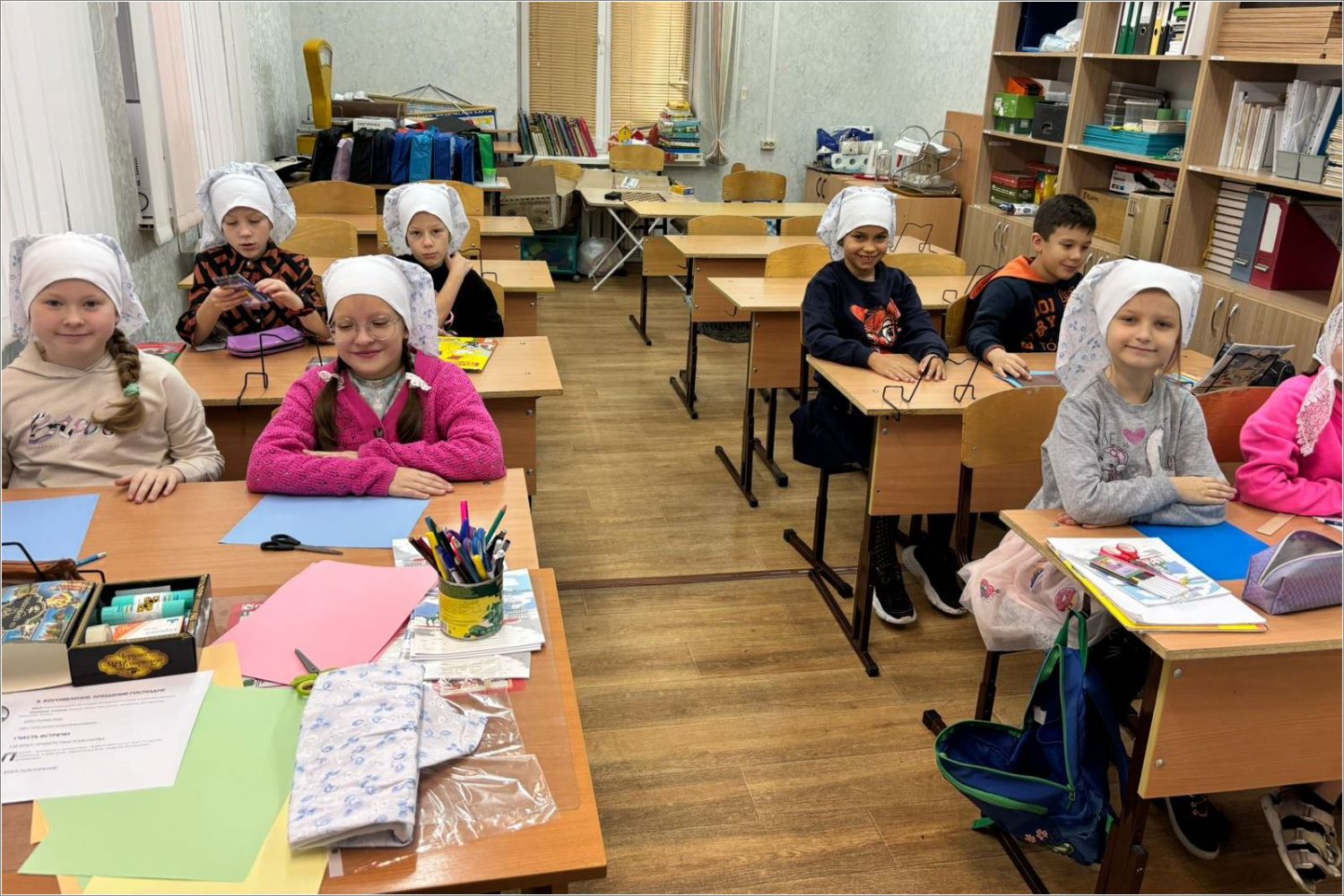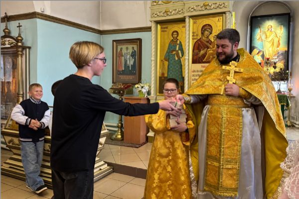 Группа «Буквицы» детской воскресной школы при Свято-Вознесенском кафедральном соборе с помощью педагога Олеси Никитиной в этот день мастерили открытки, чтобы дома в праздничной атмосфере поздравить своих дорогих людей.