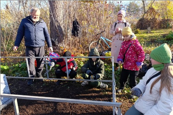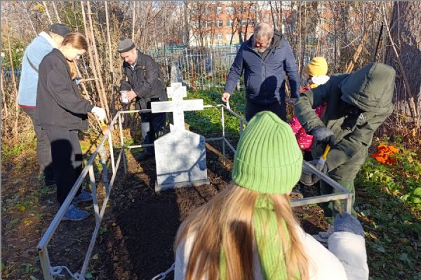 Совместно с педагогами и родителями дети убрали с могилы опавшие листья, пропололи сорняки, вскопали землю, чтобы весной посадить здесь цветы, покрасили ограду от ржавчины. Клирик Свято-Вознесенского собора диакон Виталий Семенов и певчий Андрей Ганеев отслужили заупокойную литию по рабу Божьему Филиппу.