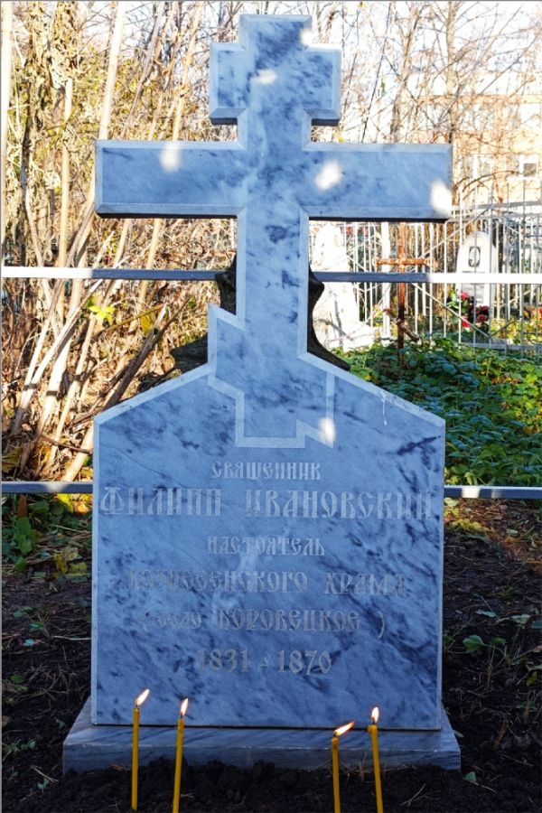 Посещать могилы усопших родственников — добрая традиция в Православной Церкви, но угодно Богу и внимание к христианам, жившим столетия назад и ушедшим в благие Обители. На этом старинном городском кладбище покоится священник Филипп Ивановский — настоятель Боровецкого храма в середине XIX столетия, который скончался в 1870 году. «… покоится раб Божий священник Филипп Федорович Ивановский, 1870 г. 14 ноября. От 39 лет священствовал 17 лет», — гласят наполовину стертые буквы на могильном камне.