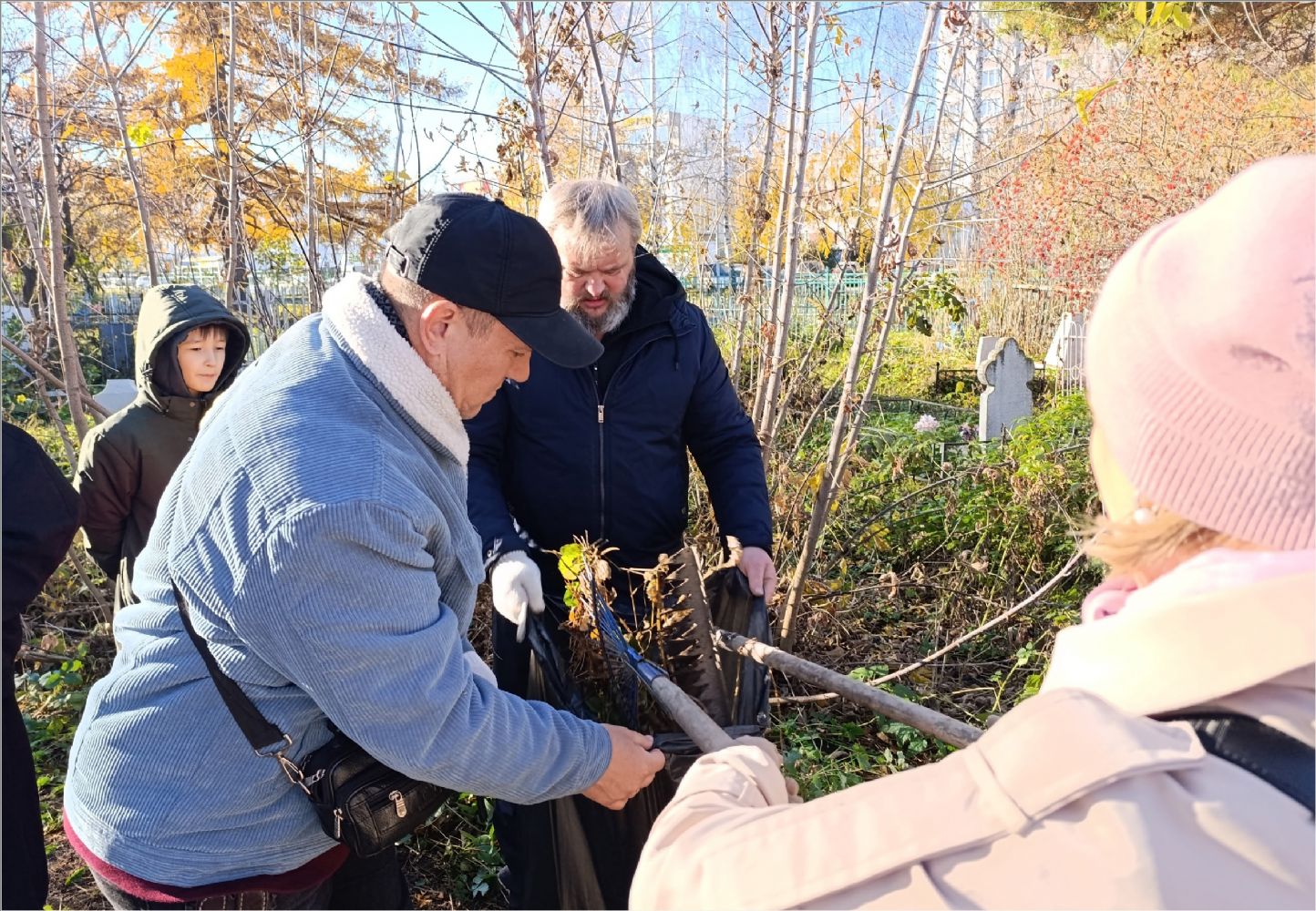 26 октября в преддверии Дмитриевской родительской субботы воспитанники Клуба юных спасателей «Спас» и ученики воскресной школы «Радуга» при Свято-Вознесенском кафедральном соборе потрудились на Боровецком кладбище. Их организаторами и соучастниками этого благого дела стали диакон Виталий Семенов, певчий архиерейского хора Андрей Ганеев, общественный деятель города Сергей Изотов, родители и педагоги Ольга Желтоножко и Алена Апарина.