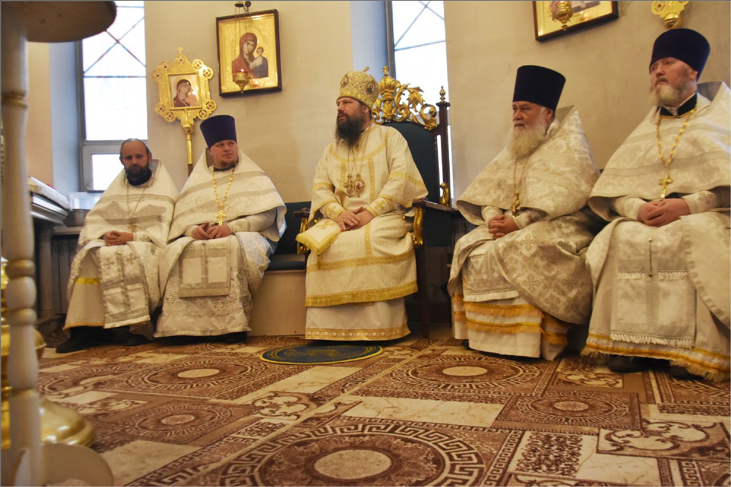 Владыке сослужили благочинный Закамского округа протоиерей Андрей Дубровин, ключарь Казанско-Богородицкой церкви иерей Димитрий Веретнов, а также священники прихода иерей Алексий Носов, иерей Иоанн Можаев. Диаконский чин возглавил протодиакон Дмитрий Половников. Песнопения исполнил смешанный приходской хор под управлением Татьяны Вылку.