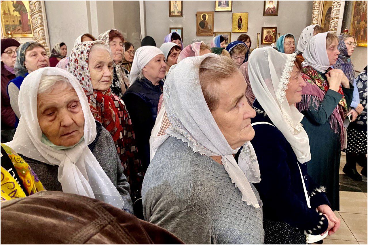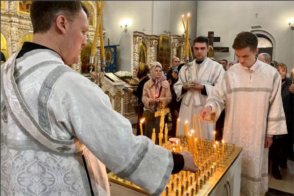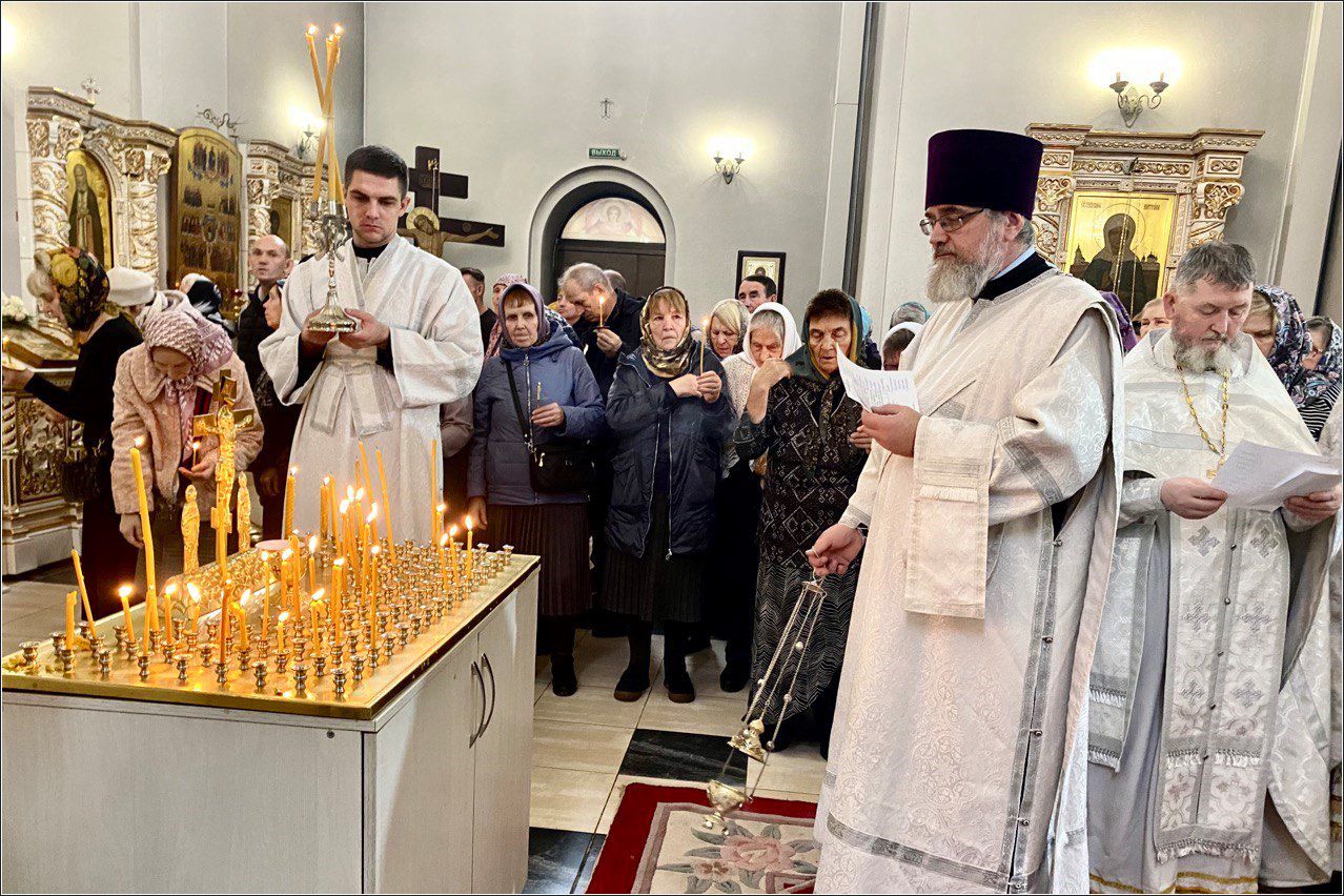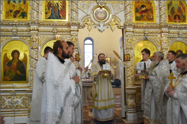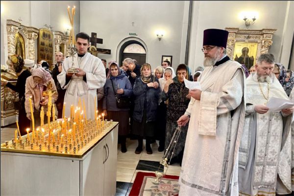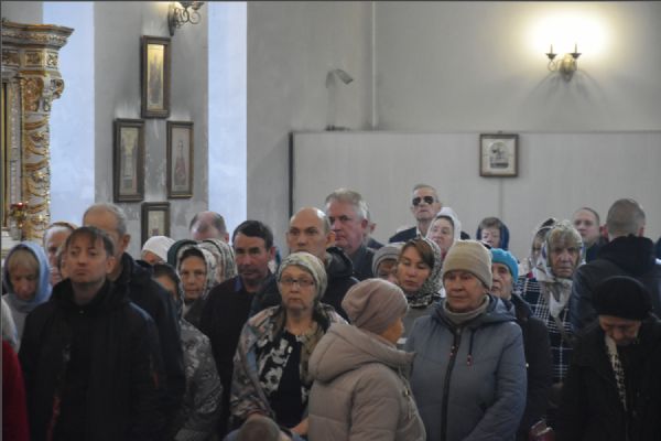 На мирной и сугубой ектениях были вознесены молитвенные прошения о Российском воинстве и о мире. По запричастном стихе проповедь произнёс иерей Алексий Носов.