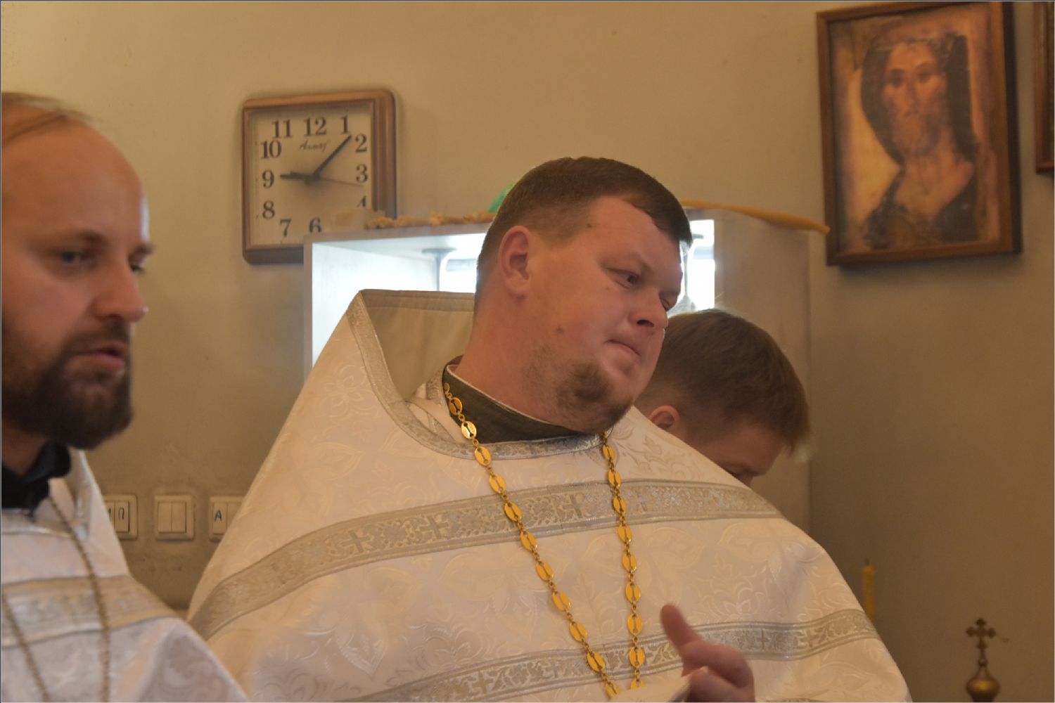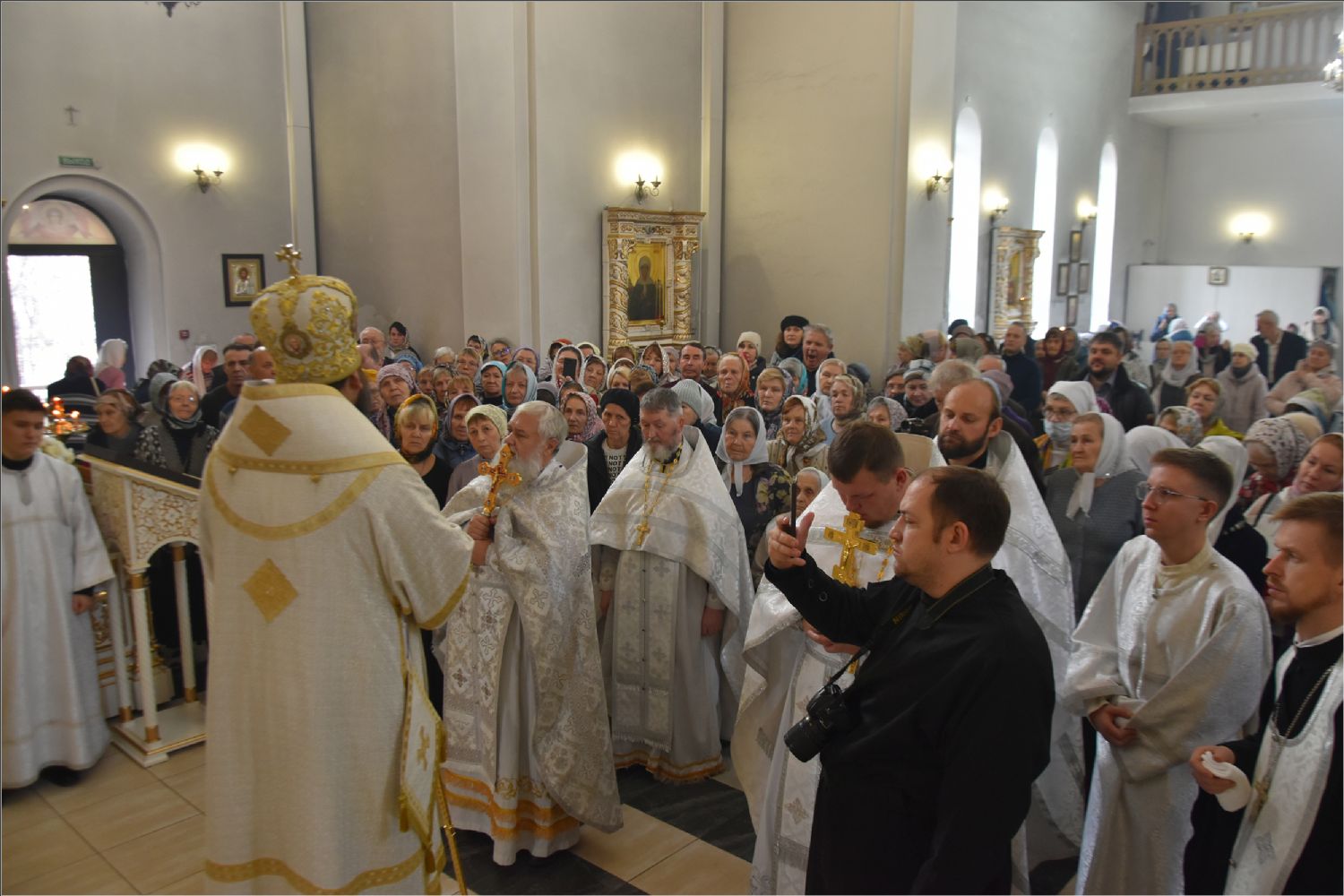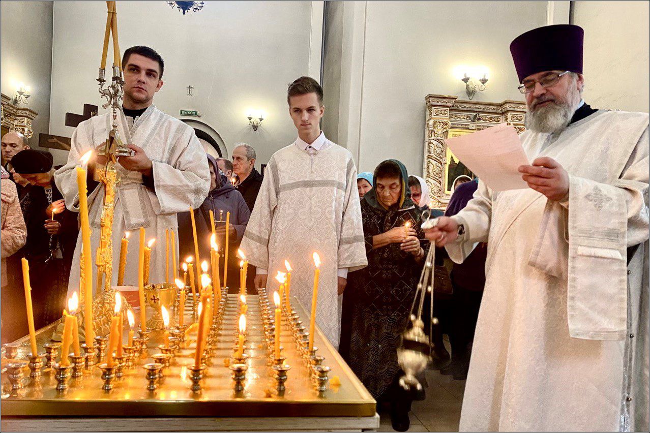 На мирной и сугубой ектениях были вознесены молитвенные прошения о Российском воинстве и о мире. По запричастном стихе проповедь произнёс иерей Алексий Носов.