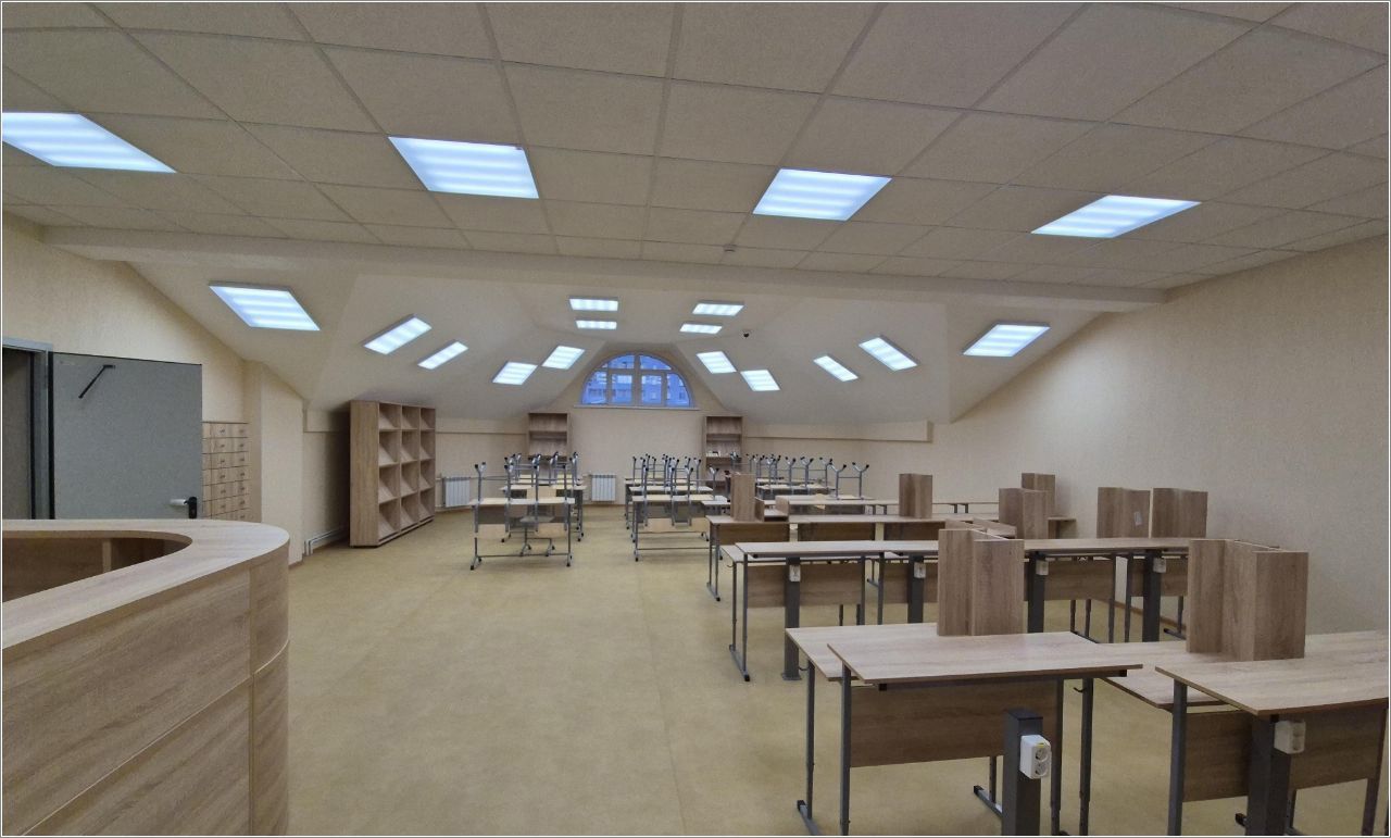 На мансардном этаже есть кабинеты директора, настоятеля, завуча, логопеда, психолога, книгохранилище с читальным залом.