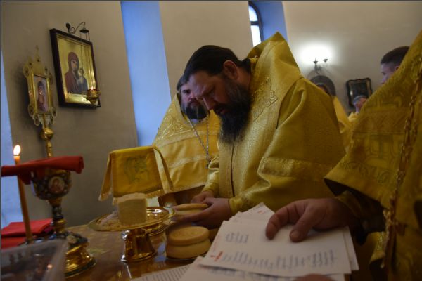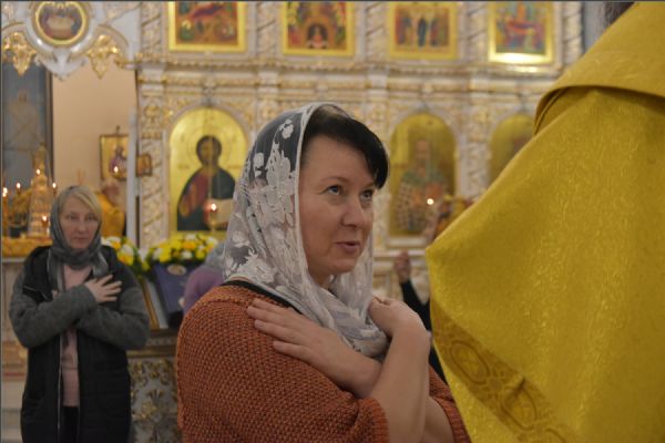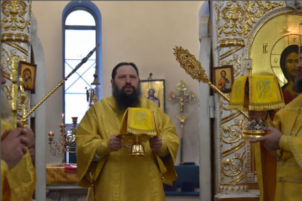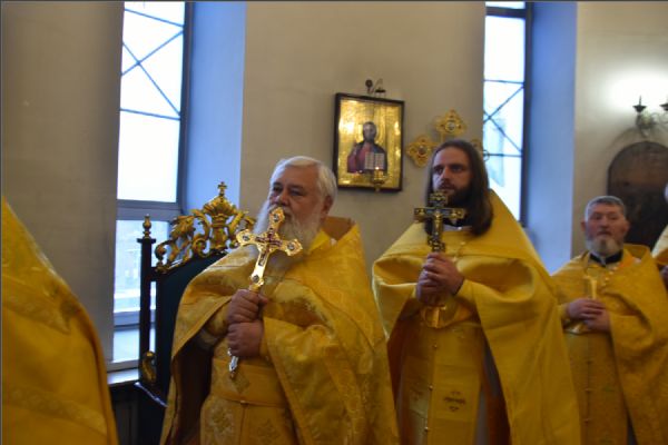 На мирной и сугубой ектениях были вознесены молитвенные прошения о Российском воинстве и о мире. По запричастном стихе проповедь произнёс иерей Иоанн Можаев.