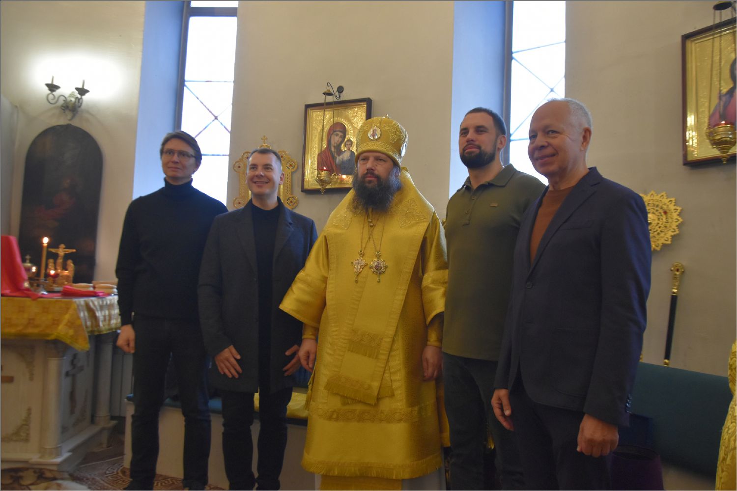 Утром 1 ноября архипастырю сослужили секретарь Набережночелнинской епархии протоиерей Андрей Лосык, благочинный Закамского округа протоиерей Андрей Дубровин, настоятель храма преподобного Серафима Саровского города Набережные Челны иеромонах Амвросий (Степанюк), ключарь Казанско-Богородицкой церкви иерей Димитрий Веретнов, а также священники прихода иерей Алексий Носов, иерей Иоанн Можаев. Диаконский чин возглавил протодиакон Дмитрий Половников.