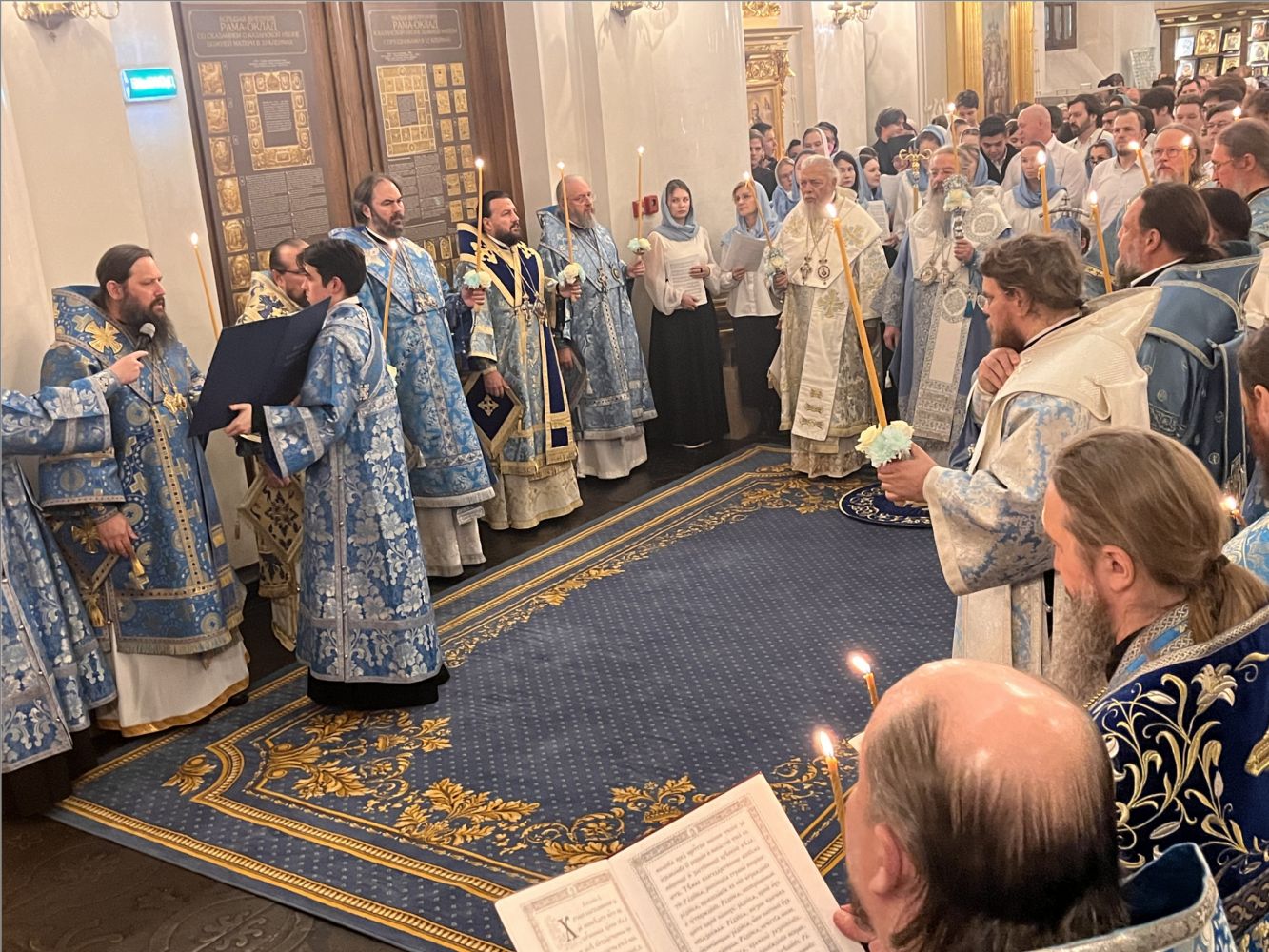 В завершение богослужения духовенство совершило славление Царице Небесной.