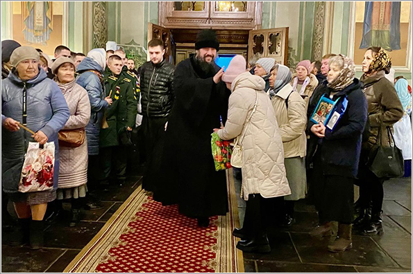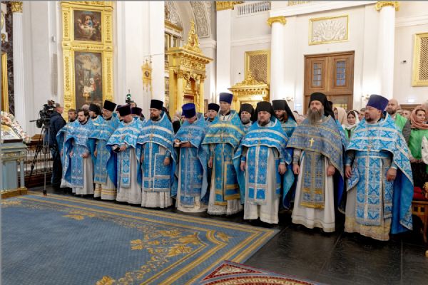 На мирной и сугубой ектениях были вознесены молитвы о Российском воинстве и о мире. Часть молитвословий возносилась на арабском и английском языках. По запричастном стихе проповедь произнёс благочинный I церковного округа города Казани протоиерей Владимир Самойленко.