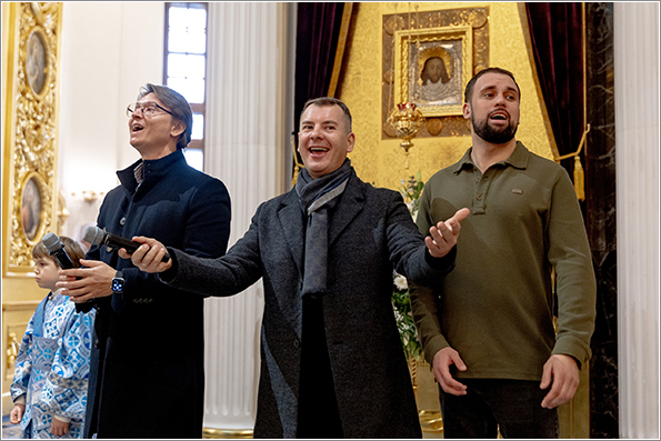 В завершение участники арт-группы LARGO, которые также по традиции прибыли в столицу Татарстана на праздник Казанской иконы Божией Матери, исполнили с амвона духовный кант «О, Всепетая Царица».