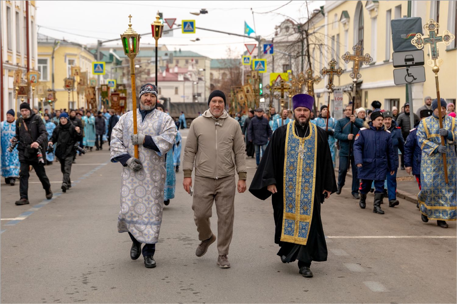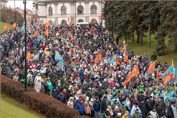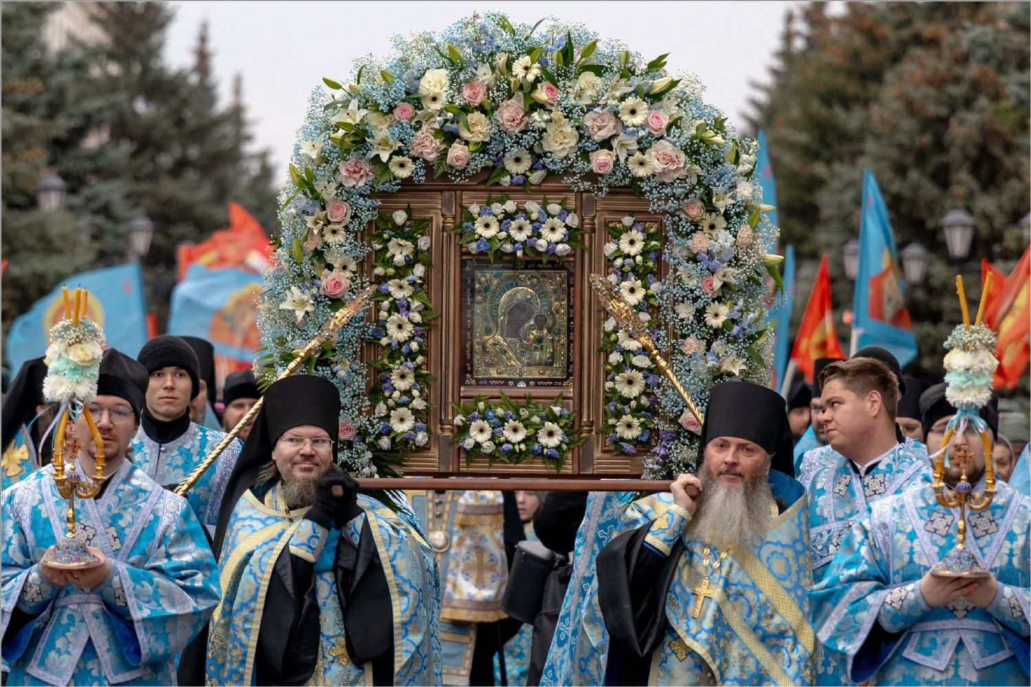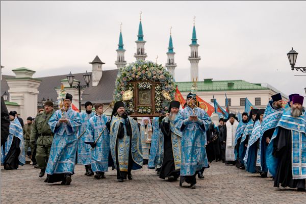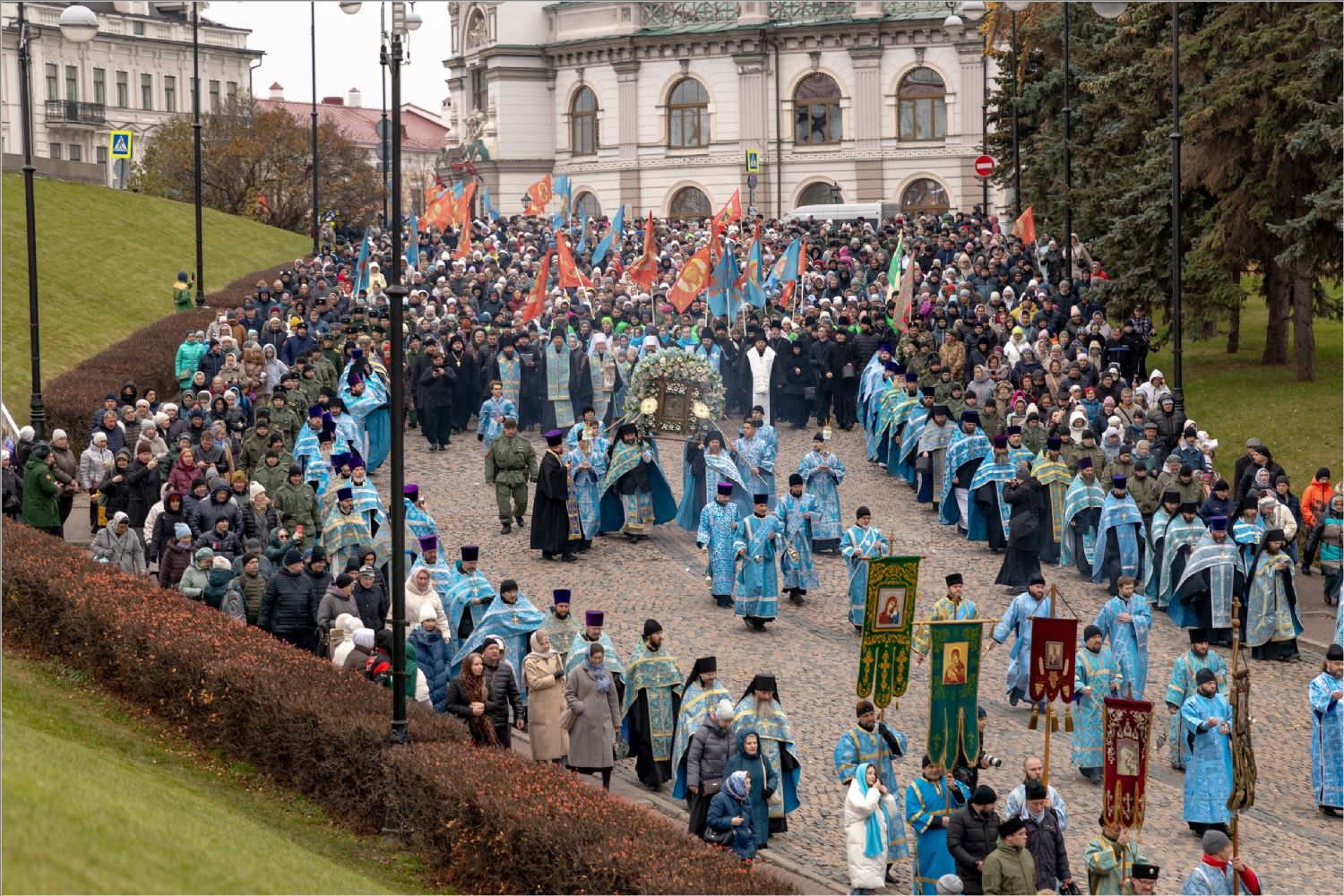 Утром 4 ноября состоялся общегородской крестный ход с чтимым Казанским образом Царицы Небесной из Благовещенского собора Казанского кремля в Казанский Богородицкий монастырь, к месту обретения святыни. Казанская икона Пресвятой Богородицы была внесена в Казанский собор. После принесения чтимого образа началась Божественная литургия.