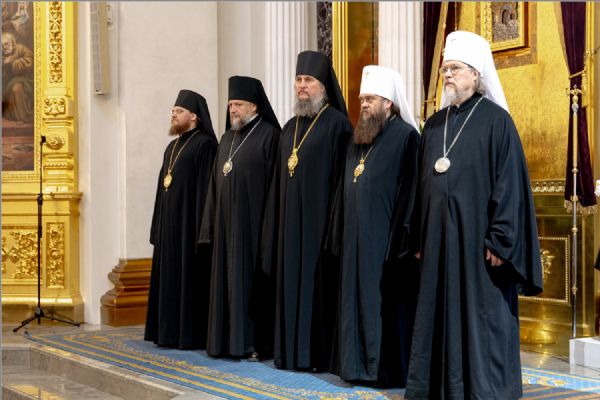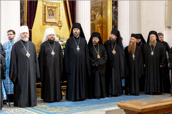 Митрополит Кирилл тепло поприветствовал и поблагодарил за молитвы архипастырей и священнослужителей, прибывших в Казань для участия в церковных торжествах: