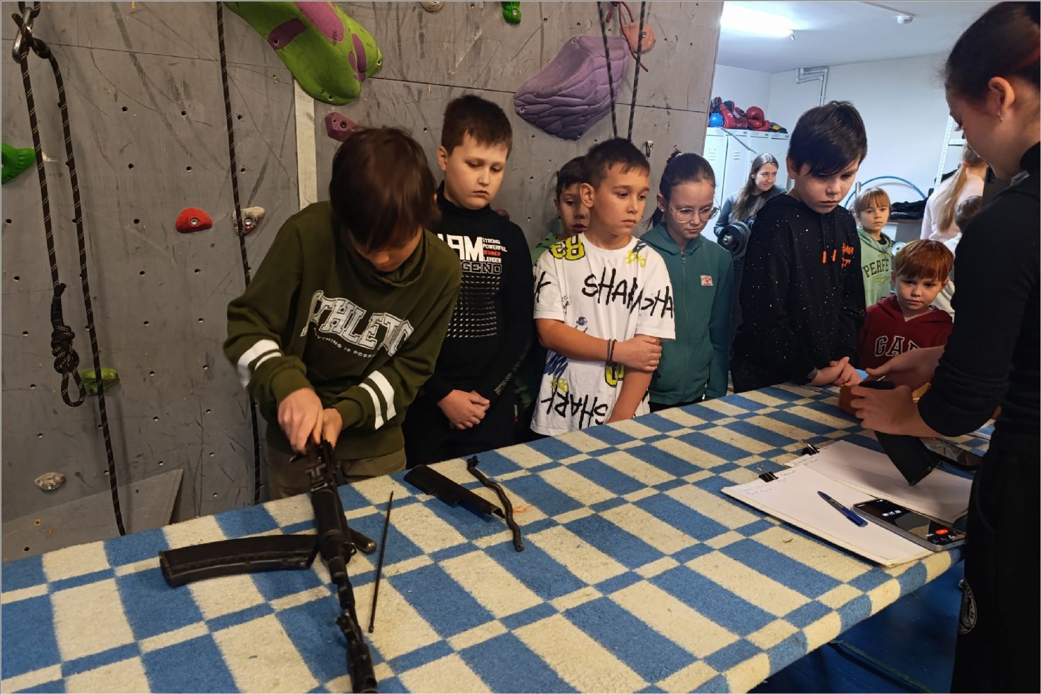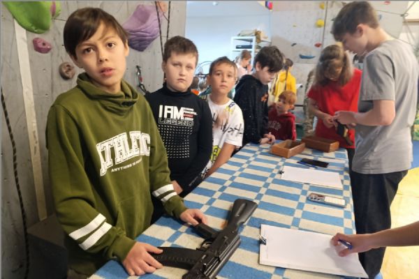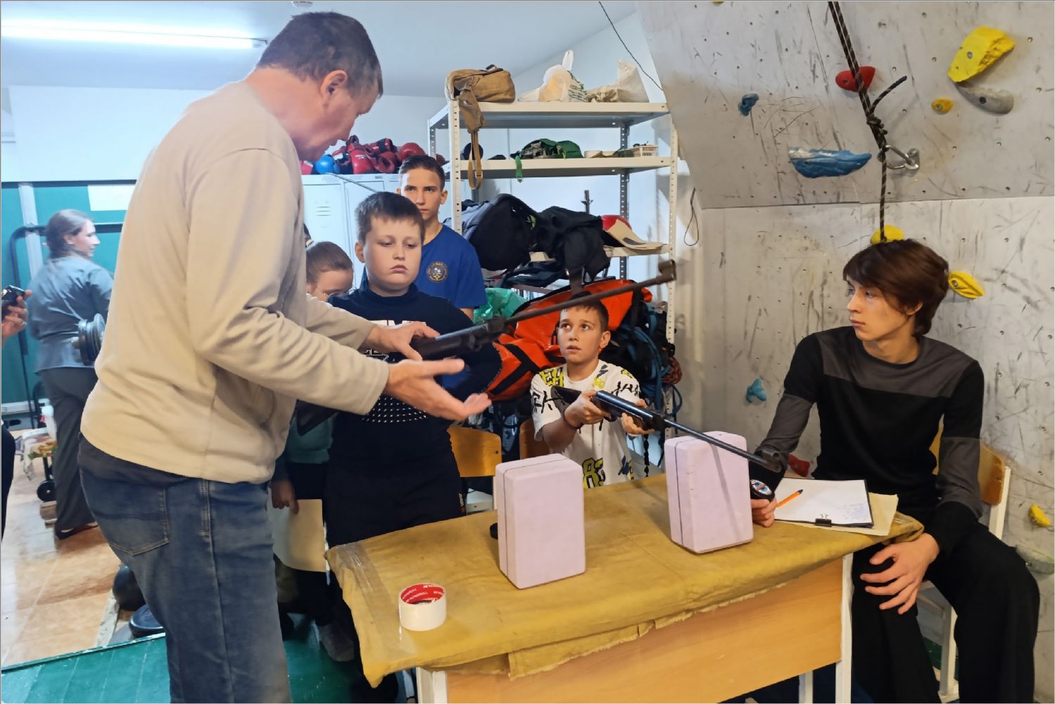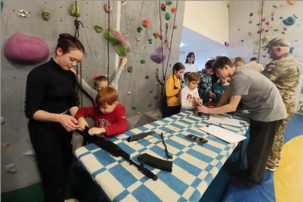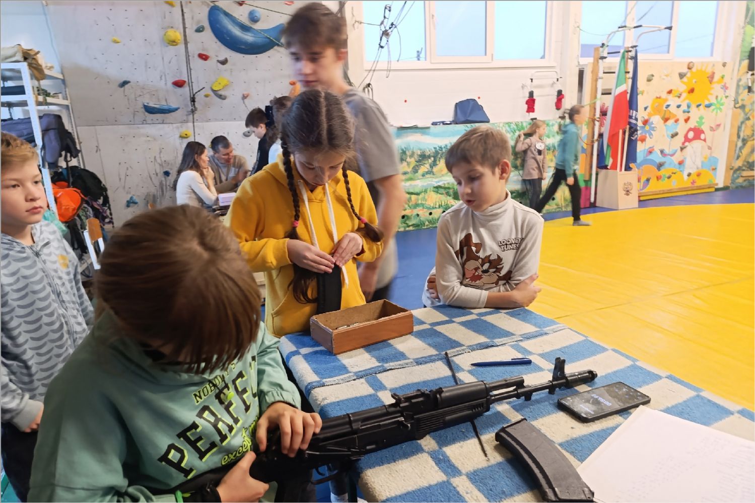 В первой части мероприятия среди ребят выявляли лидеров в сборке и разборке автомата АК-74, снаряжении и разряжении магазина автомата, в стрельбе из пневматической винтовки.