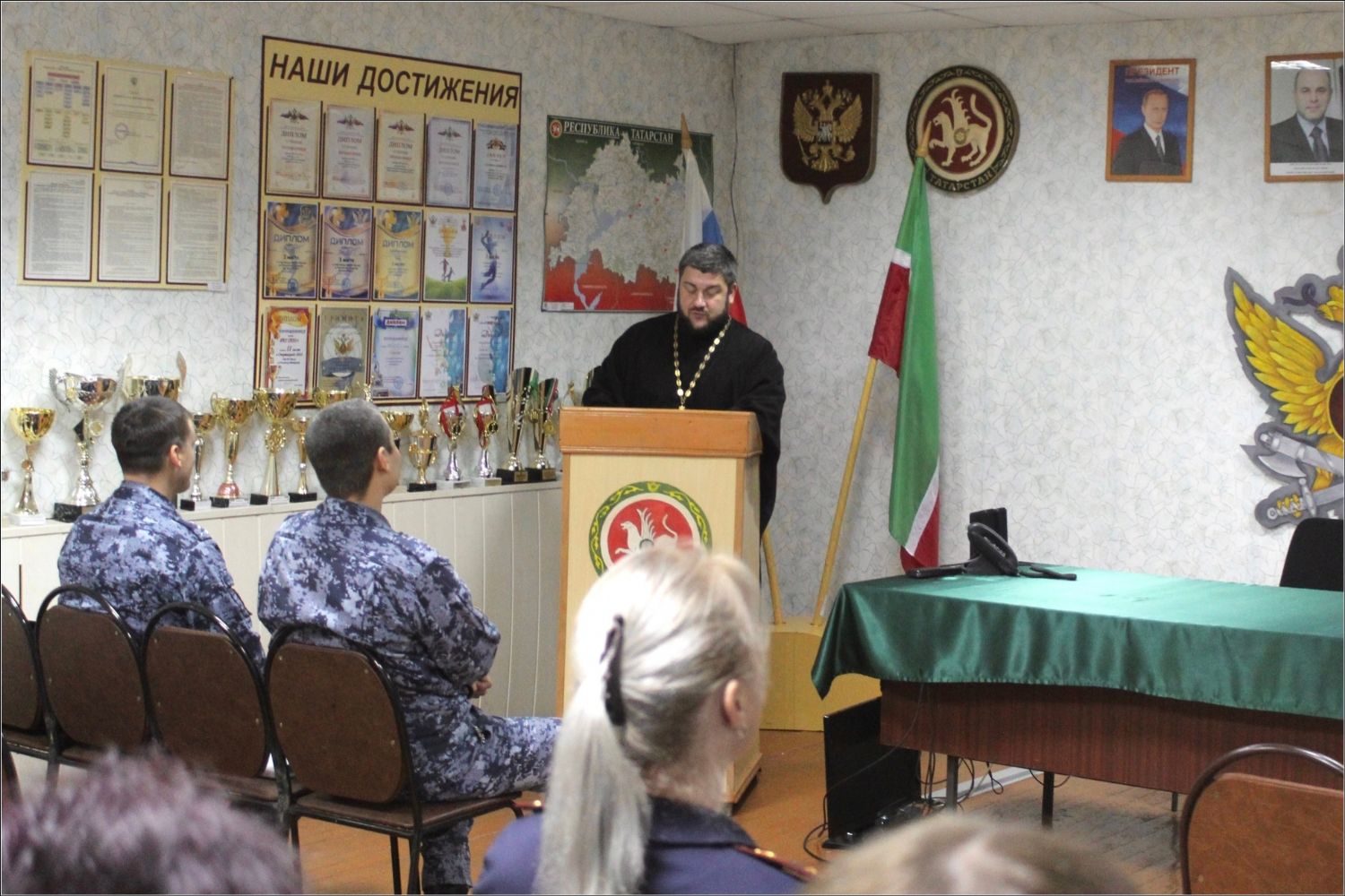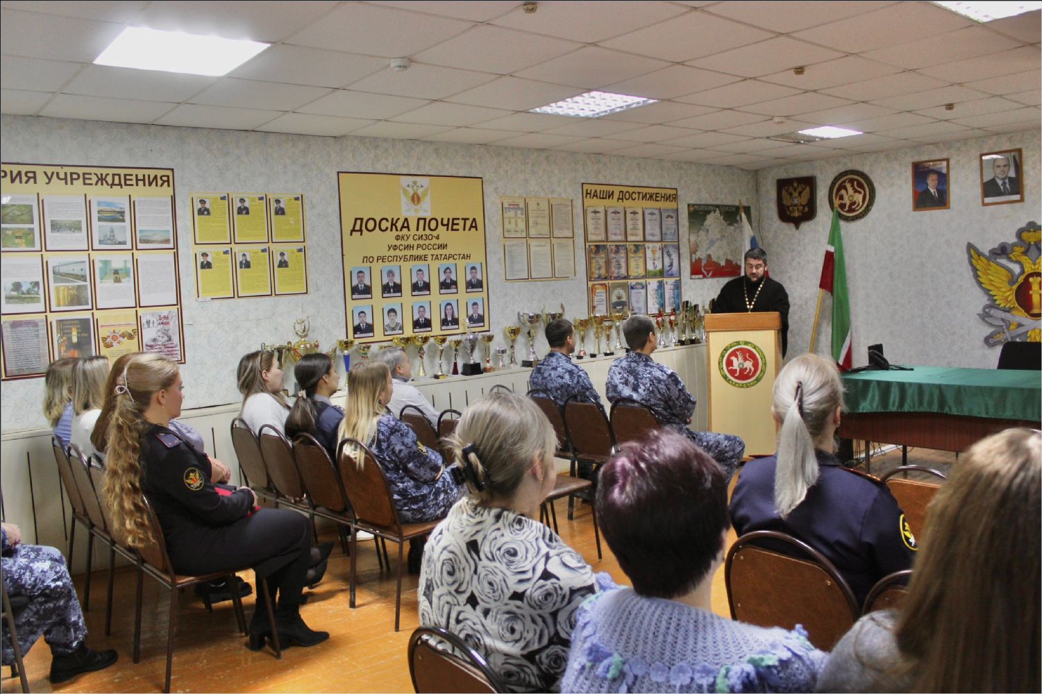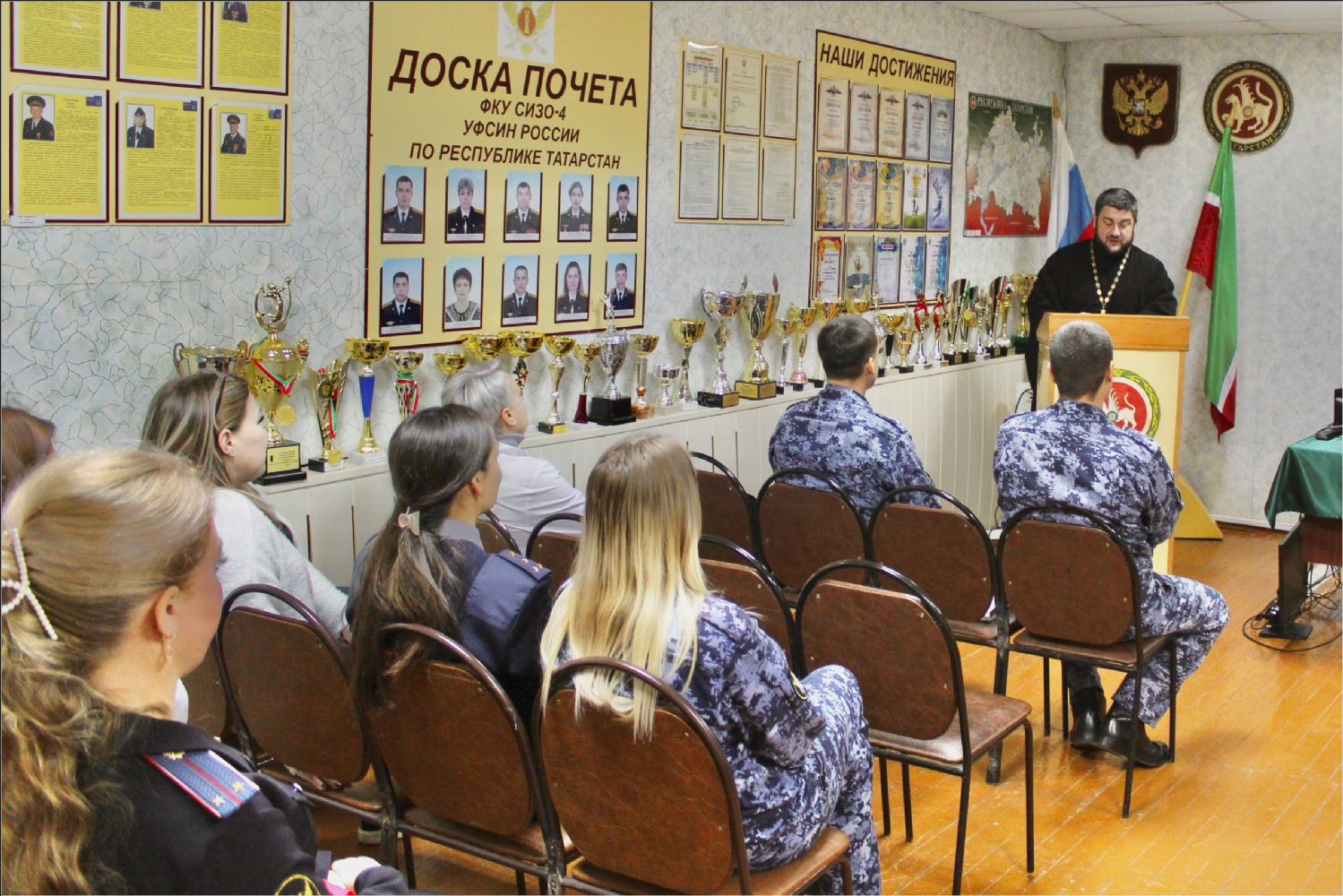 В ходе встречи рассмотрели духовно‑нравственные качества сотрудника ФСИН: порядочность, справедливость, терпимость, уважительность, ответственность, самообладание; значение мировоззренческих ориентиров: как личные убеждения помогают сохранять профессиональную позицию в сложных ситуациях; ресурсы духовного развития: способы поддержания внутреннего равновесия и предотвращения эмоционального истощения. Особое внимание было уделено тому, как духовно‑нравственные ценности могут стать основой для конструктивного общения с подследственными; профессионального роста и самореализации; гармонизации отношений в рабочем коллективе.