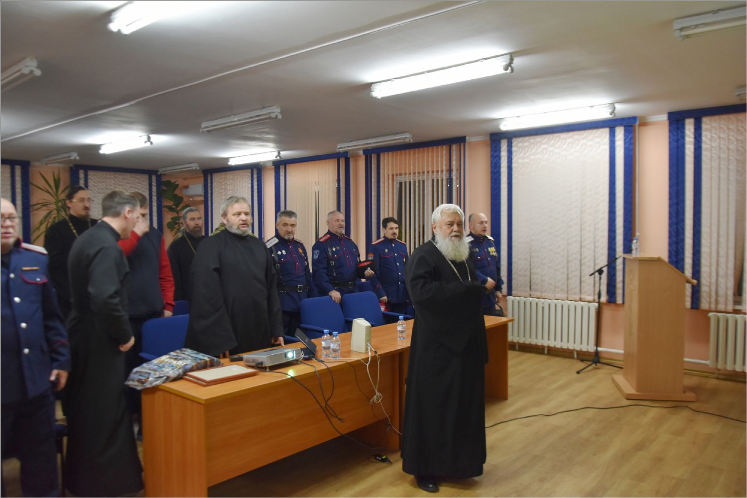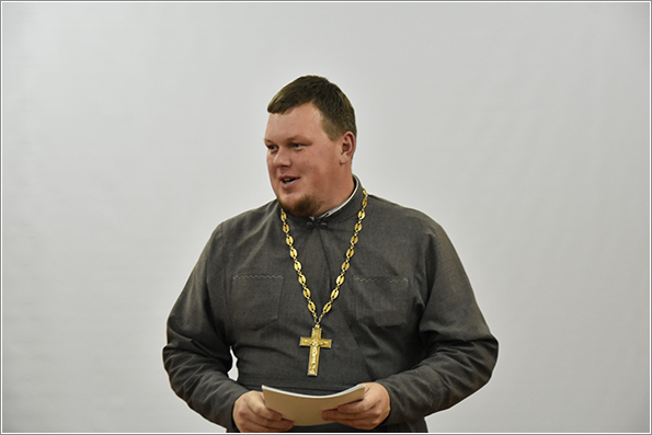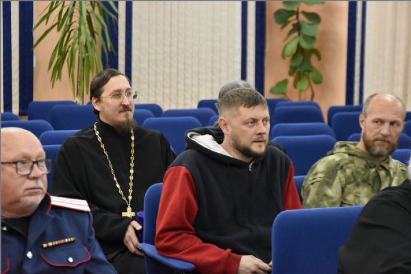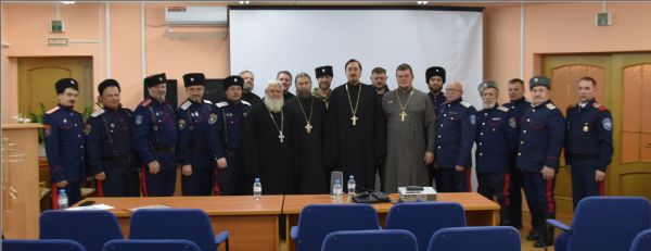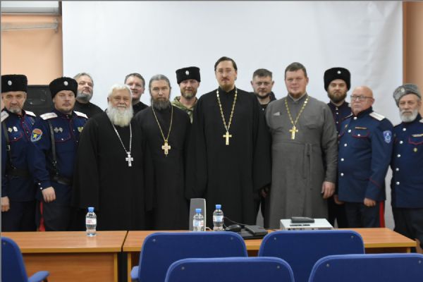 Иерей Дмитрий Веретнов поделился знаниями, полученным на курсах повышения квалификации руководителей и сотрудников епархиальных отделов по взаимодействию с казачеством, которые были проведены в Москве в Общецерковной аспирантуре и докторантуре имени святых равноапостольных Кирилла и Мефодия.