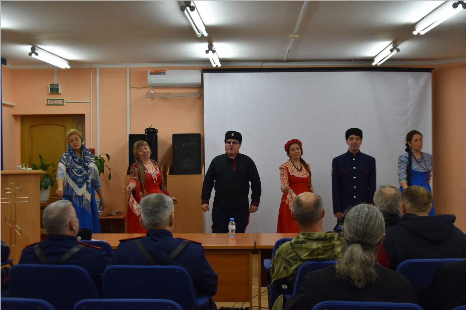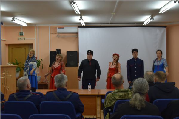 Перед началом встречи перед собравшимися выступил коллектив «Казачья станица», действующий при Свято-Вознесенском кафедральном соборе.