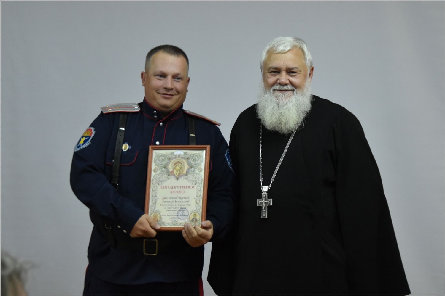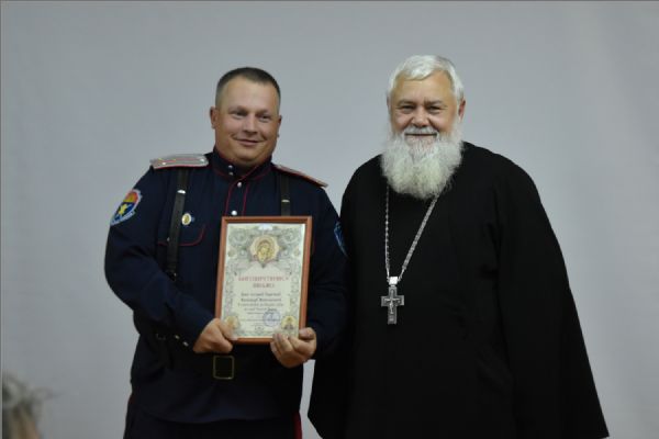 Протоиерей Андрей Дубровин вручил двум казакам епархиальные благодарственные письма.