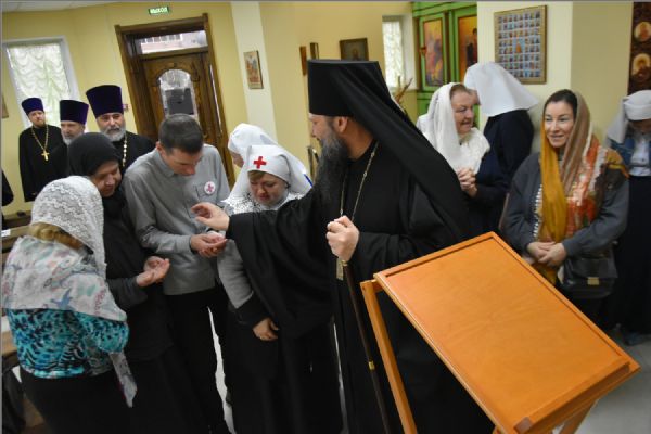 После архиерея к собравшимся обратился духовник социального отдела, настоятель Серафимовского храма иеромонах Амвросий (Степанюк).