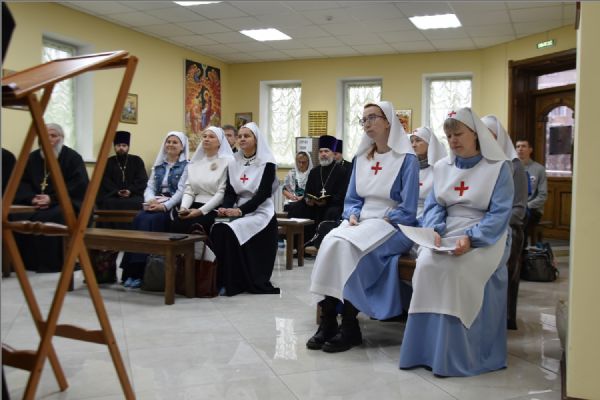 Перед собравшимися выступили сестры милосердия сестричеств Набережночелнинской епархии: старшая сестра милосердия сестричества имени инокини Варвары Алапаевской Ирина Макаревская поделилась результатами своей работы при храме святителя Тихона в Сидоровке. Старшая сестра милосердия Елабужского сестричества в честь святой преподобномученицы великой княгини Елизаветы, старейшего сестричества на территории епархии, Лариса Гуслистова рассказала о деятельности «Дома милосердия» в Елабуге. Старшая сестра милосердия Свято-Елисаветинского сестричества при храме святых бессребреников Космы и Дамиана Юлия Веселова поделилась своим опытом больничного служения в епархии. Сестра милосердия Свято-Серафимовского сестричества при храме преподобного Серафима Саровского Екатерина Мищихина сказала об опыте благотворительных ярмарок, как эффективного инструмента пожертвований для деятельности. Помощник благочинного Закамского округа по социальному служения Елена Кораблева поделилась своими знаниями об организации, сборе помощи и отправке грузов различного характера и размера в зону СВО.