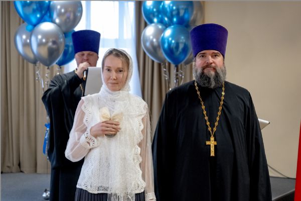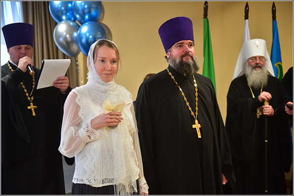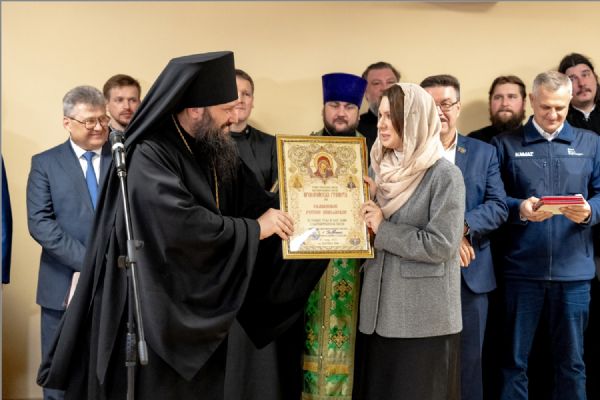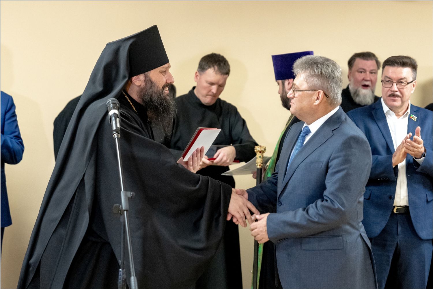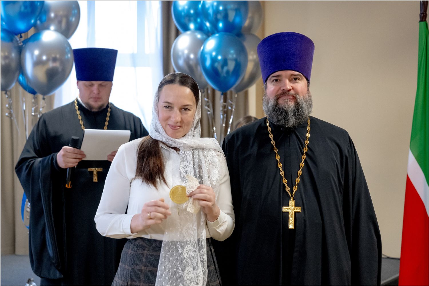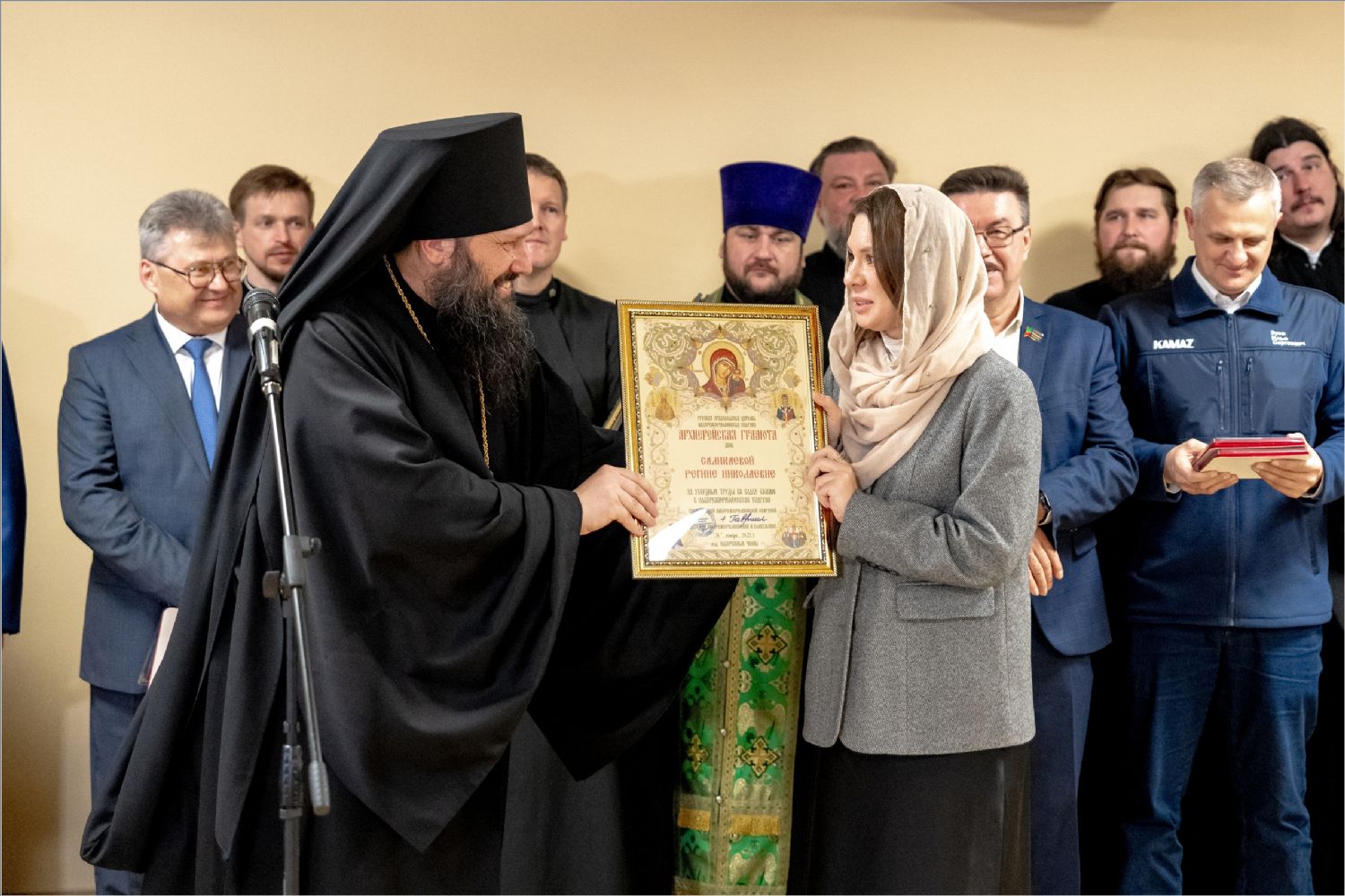 Епископ Набережночелнинский и Елабужский Гавриил в знак признательности вручил награды — епархиальными медалями награждены мэр и благотворители, внесшие вклад в строительство гимназии.