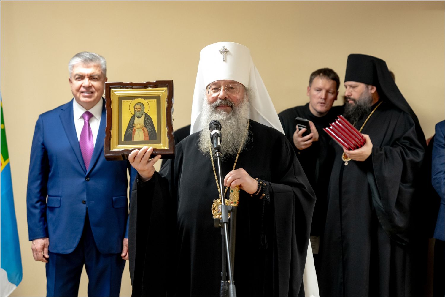 Ученикам гимназии митрополит вручил образ преподобного Серафима Саровского — в знак благословения на учебу.
