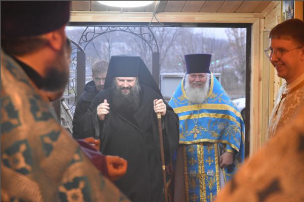 «Дорогой Владыко! От имени всего прихода сердечно благодарю за то, что, несмотря на большую занятость, Вы отозвались на приглашение и сегодня в нашем храме в сослужении духовенства и прихожан нашего храма возглавили Божественную Литургию. Мы — Ваши чада, и Вы молитесь за нас. Мы обычные — грешные, не умеем преодолеть греховные склонности, часто ошибаемся. Вы нас поправляете и молитесь за нас Господу и Божией Матери. Мы же молим о помощи Божией, чтобы нам исправляться и как можно меньше Вас огорчать».
