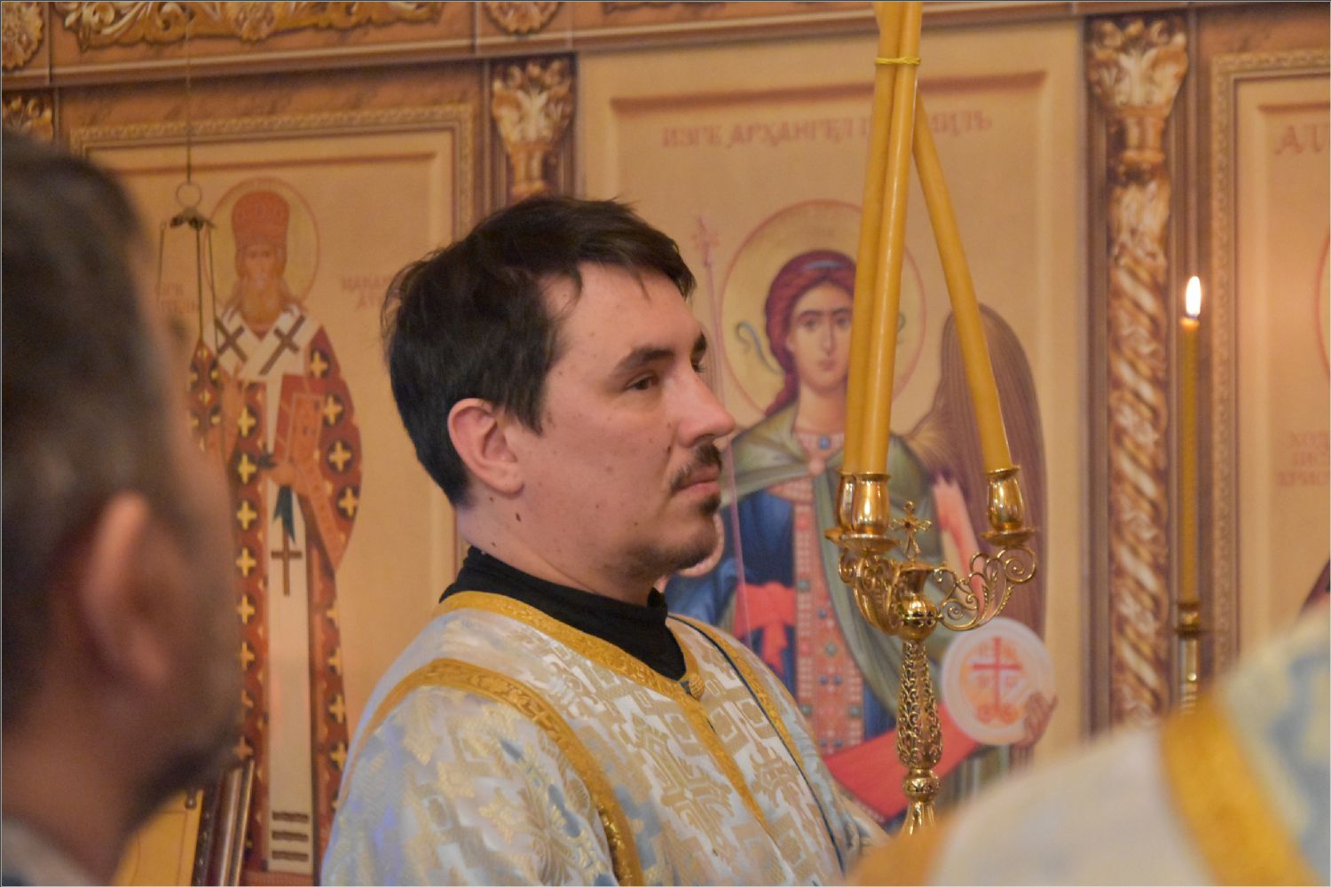 Диаконский чин возглавил протодиакон Дмитрий Половников. Песнопения исполнили два хора: приходской женский хор под управлением Веры Зиганшиной и мужской состав архиерейского хора под управлением Евгения Моромова. На мирной и сугубой ектениях были вознесены молитвы о Российском воинстве и о мире.
