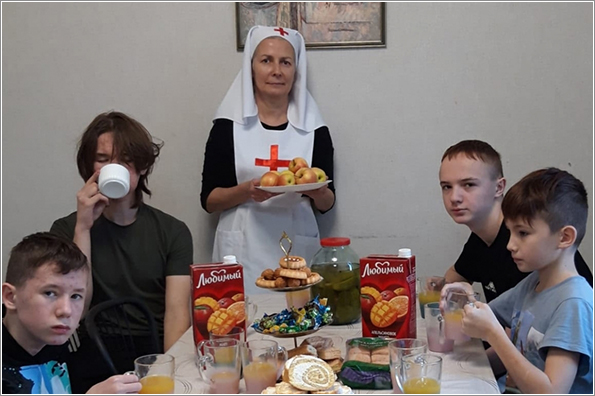 Затем сестры милосердия изготовили с детьми декоративную композицию «Травы моей Родины» с использованием засушенных трав и цветов, после чего состоялось дружеское чаепитие со сладостями.