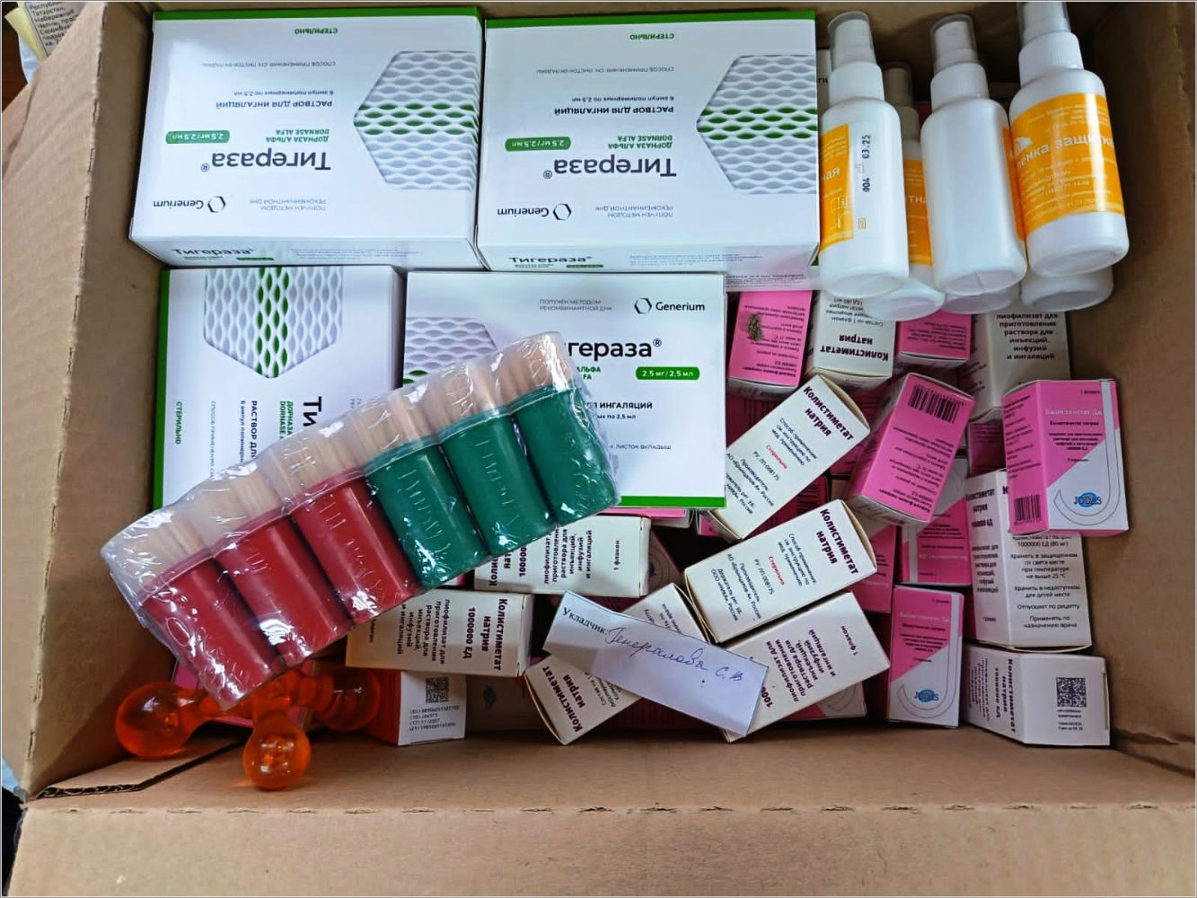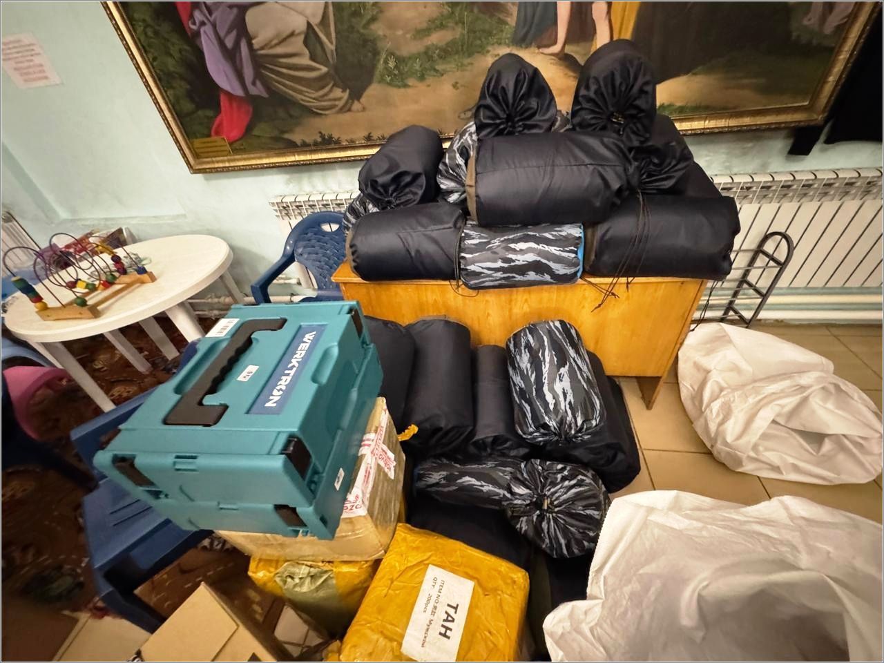 Новая отправка в мотострелковый батальон ТРО, 201-й полк третьего батальона, ОМОН и 120-ю артиллерийскую бригаду содержала воздушный компрессор, распылитель для него и шланг, квадрокоптер, инвенторный генератор, сети, хвостовики на мины для коптеров, ампульницы для нефопама, средства личной гигиены, блиндажные свечи, продукты питания, теплые жилеты, средства личной гигиены и вещи первой необходимости.