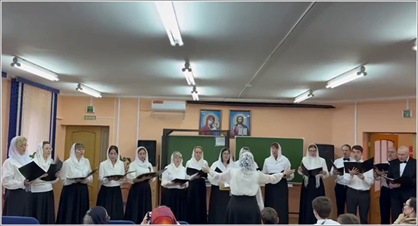 23 ноября в актовом зале Свято-Вознесенского кафедрального собора прошел отчетный концерт ансамбля «Казачья станица», приуроченный к семилетию коллектива и Дню матери. Коллектив был создан в 2018 году по благословению благочинного Закамского региона и духовника Боровецкого хутора протоиерея Андрея Дубровина.