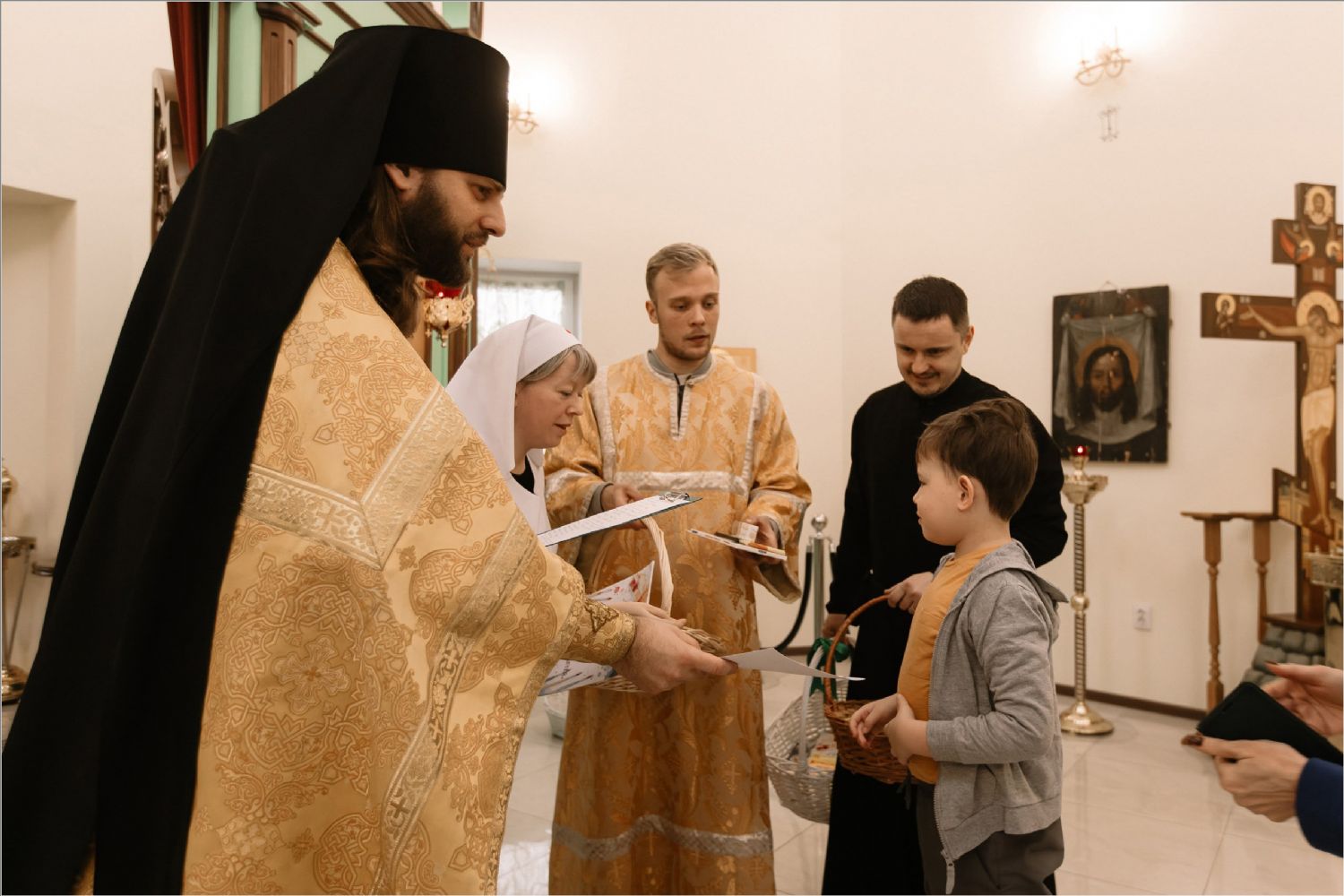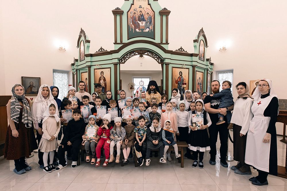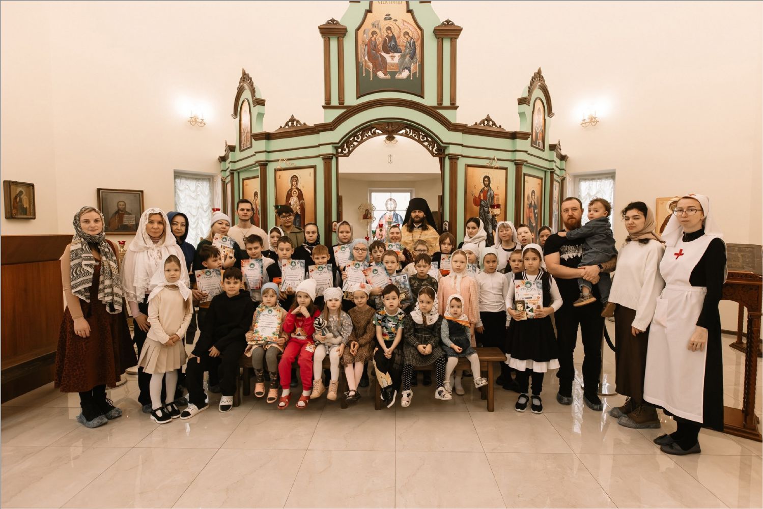 По завершении Литургии настоятель прихода иеромонах Амвросий (Степанюк) наградил участников конкурса «Храм глазами детей». Жюри выбрало лучшие работы ребят в четырех категориях: младшая группа, старшая группа, рисунок формата А3, рисунок формата А4. Также грамотами и подарками были отмечены участники конкурса «Красота Божьего мира». 22 ученика получили грамоты и подарки.
