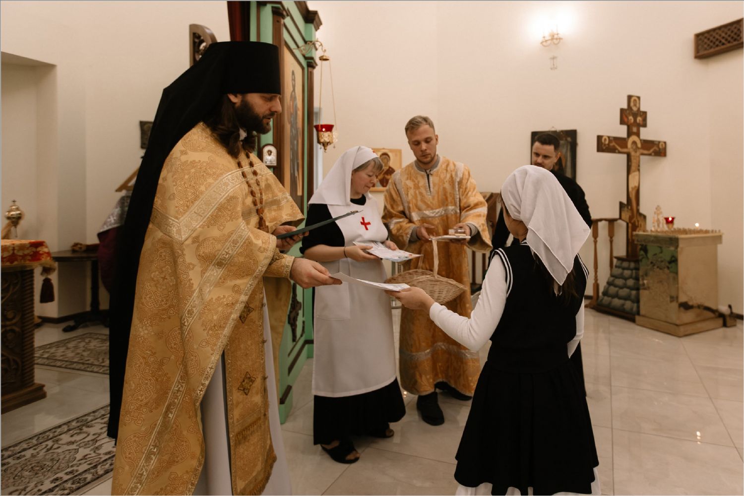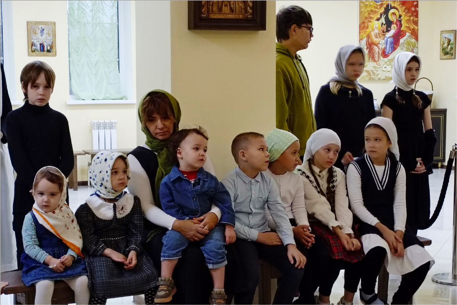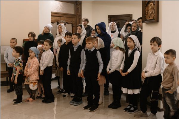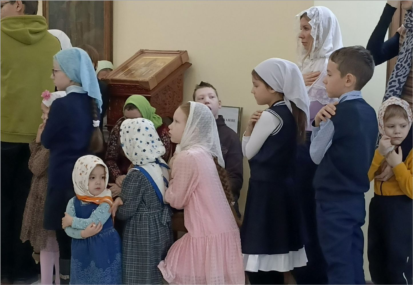 Ученики, родители и преподаватели воскресной школы «Зёрнышко», художественной школы Духовно-просветительского центра при Серафимовском приходе совместно подготовились и причастились на Литургии. Помогали на службе участники молодежной лаборатории «Серафим», действующей при храме.
