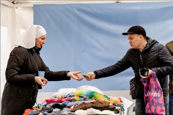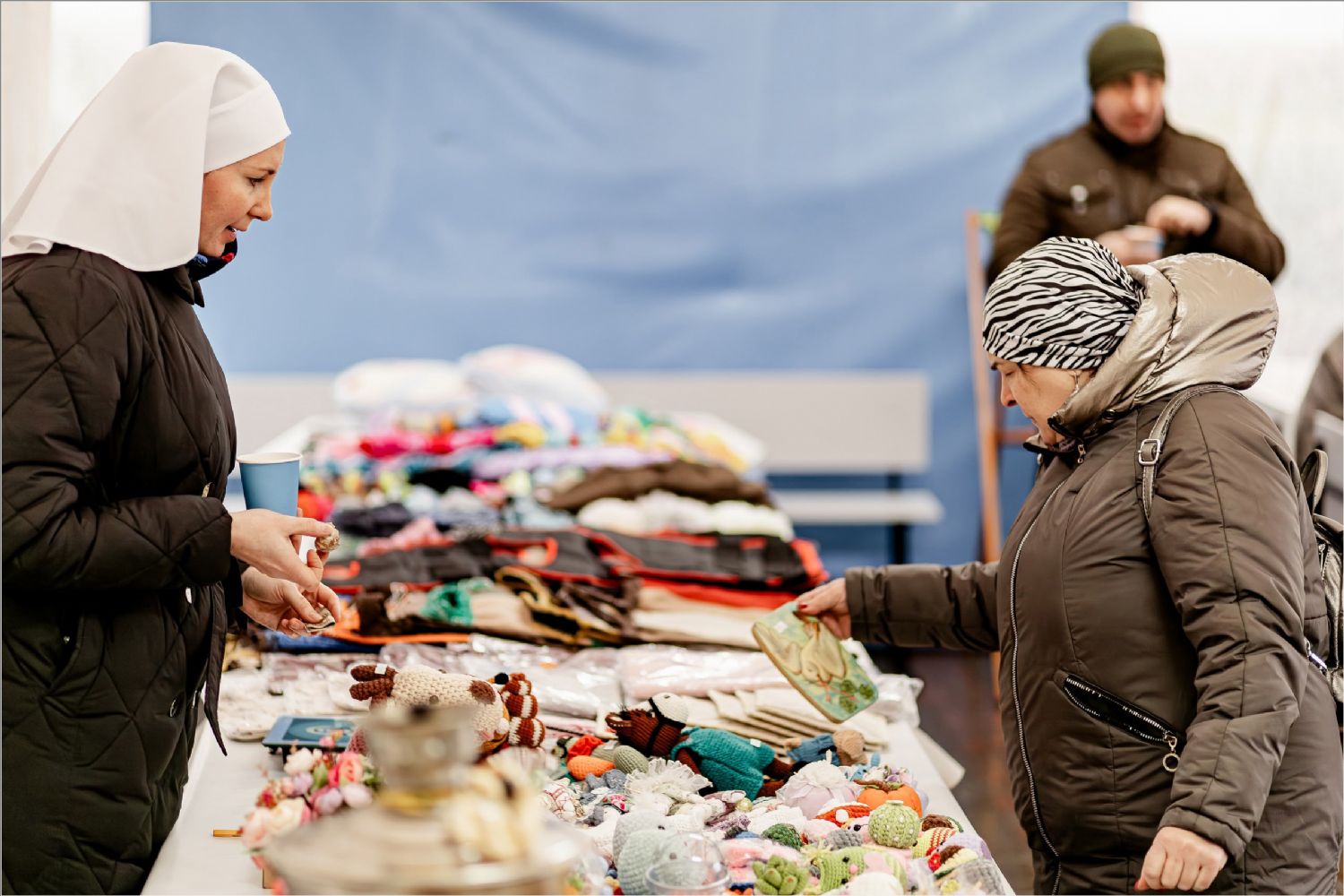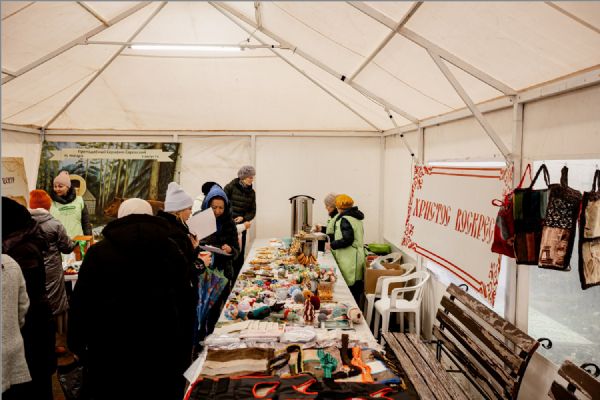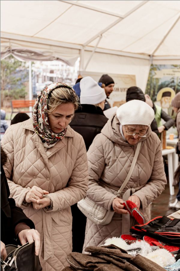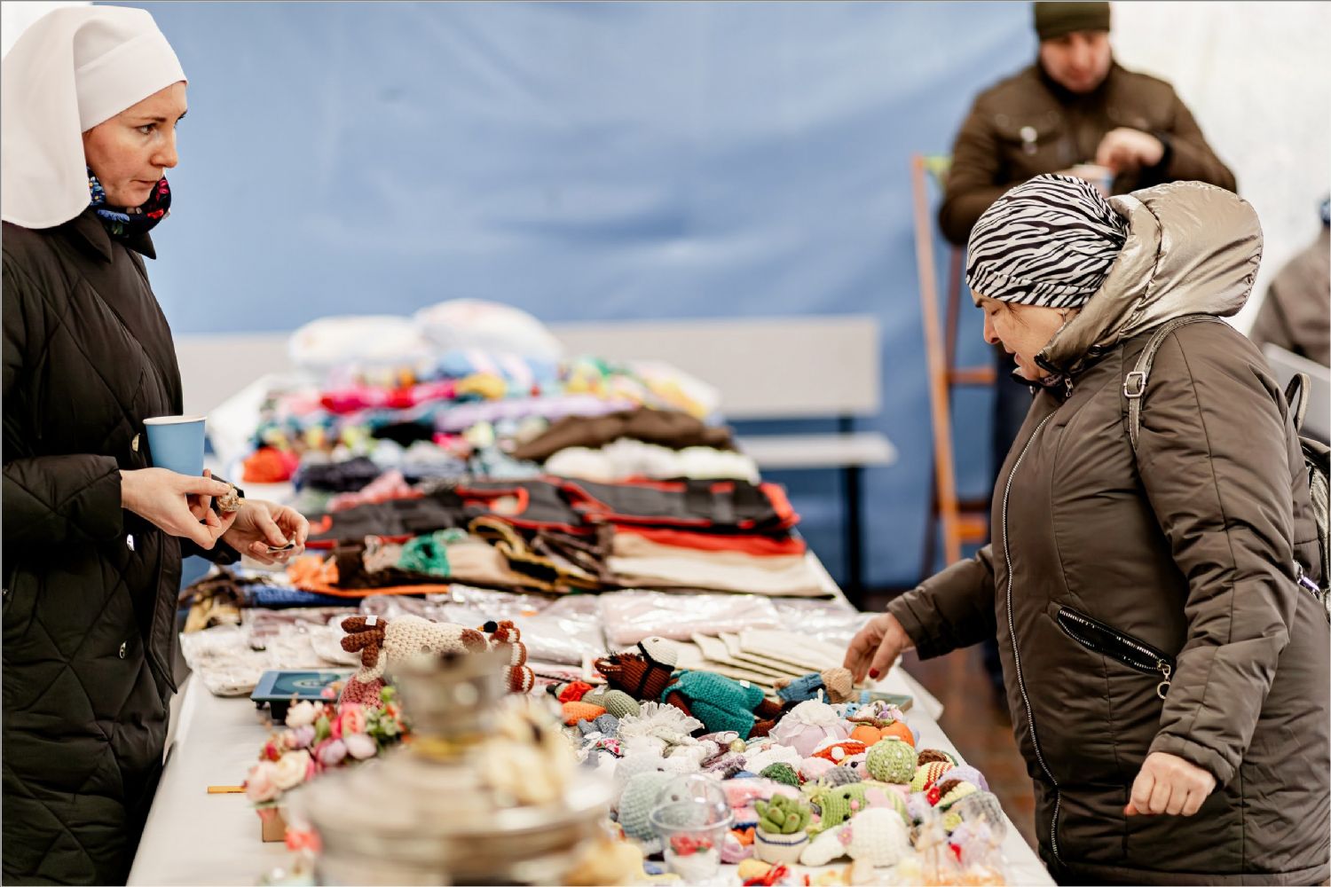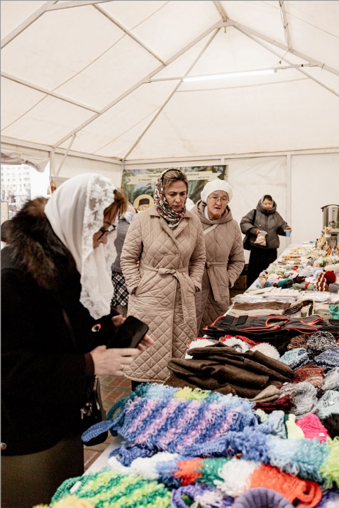 В этот же день на территории прихода прошла ярмарка изделий ручной работы с целью сбора средств на покупку подарков для подопечных семей с детьми-инвалидами. Акция приурочена к декаде инвалидов, которая пройдёт с 1 по 10 декабря. В епархиальном центре гуманитарной помощи окормляют 52 семьи с детьми-инвалидами, которые регулярно получают помощь в виде продуктовых наборов, а когда есть возможность, то получают и подарки.