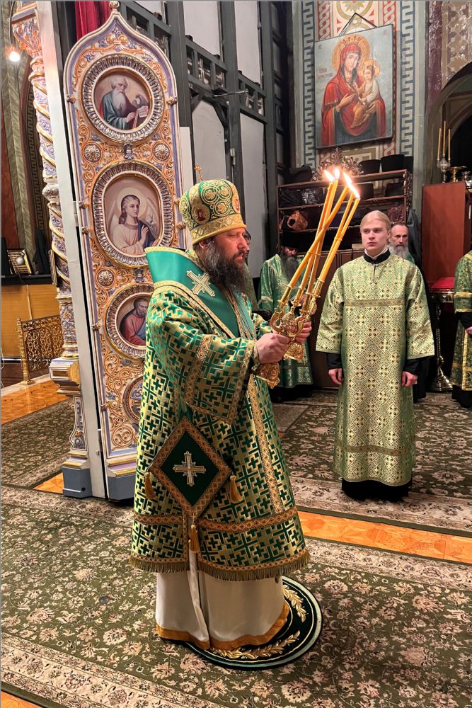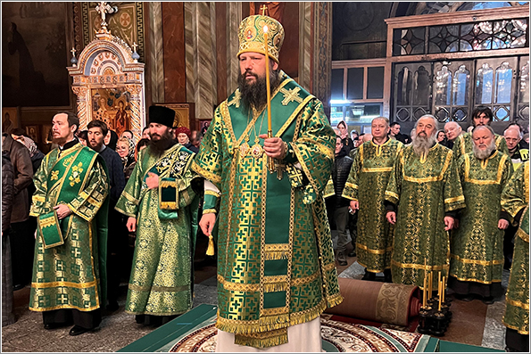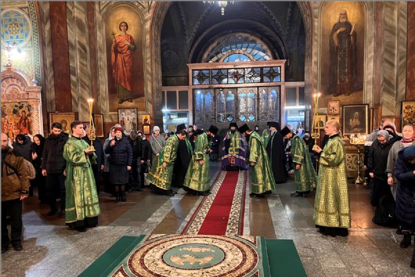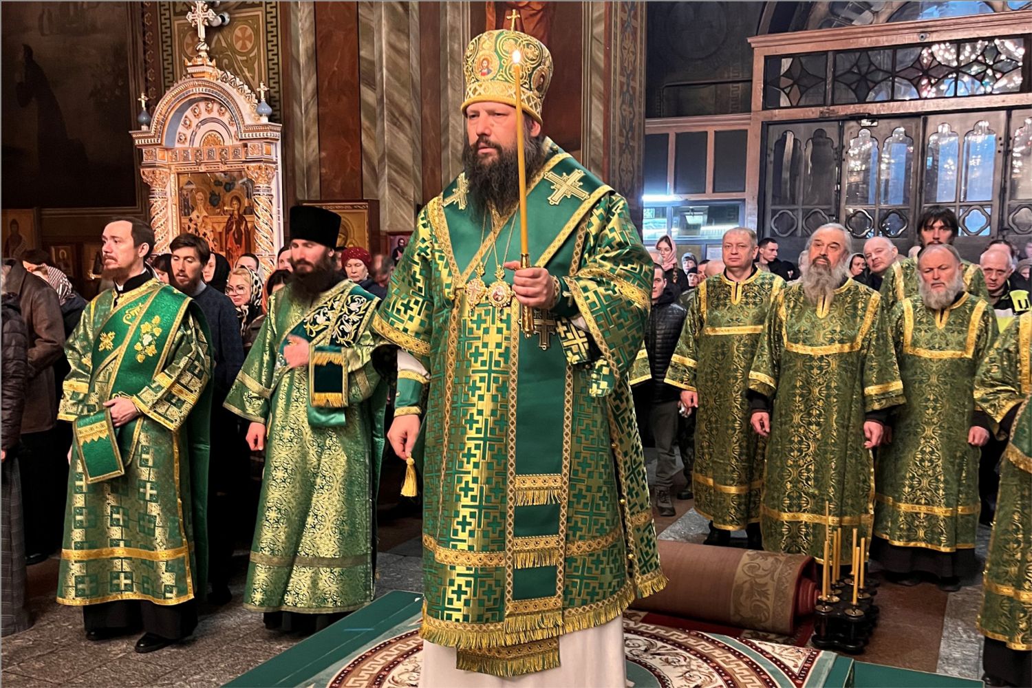 В субботу, 29 ноября, епископ Набережночелнинский и Елабужский Гавриил совершил Всенощное бдение в храме Владимирской иконы Божией Матери в сослужении архимандрита Трифона (Голубых) и братии Задонского Рождество-Богородицкого мужского монастыря.