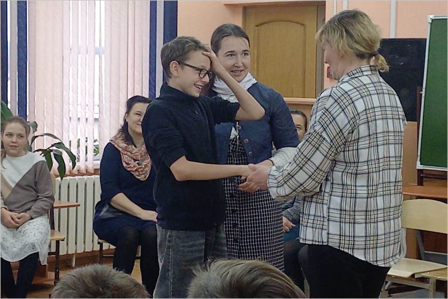 «Ребенок — зеркало семьи, как в каплях воды отражается солнце, так в детях отражается нравственная чистота матери и отца», — писал известный советский педагог В.А. Сухомлинский, и, чтобы доказать это изречение, учителя решили провести конкурс: с одной стороны ширмы стоял ребенок, с другой — мама, и они по очереди повторяли друг за другом движения, после чего каждая мать должна была узнать свое чадо по рукопожатию. Даже путь до храма на службу в этот день стал не просто давно знакомой дорогой, а возможностью вновь вспомнить и сказать теплые слова любви самому дорогому человеку в жизни.