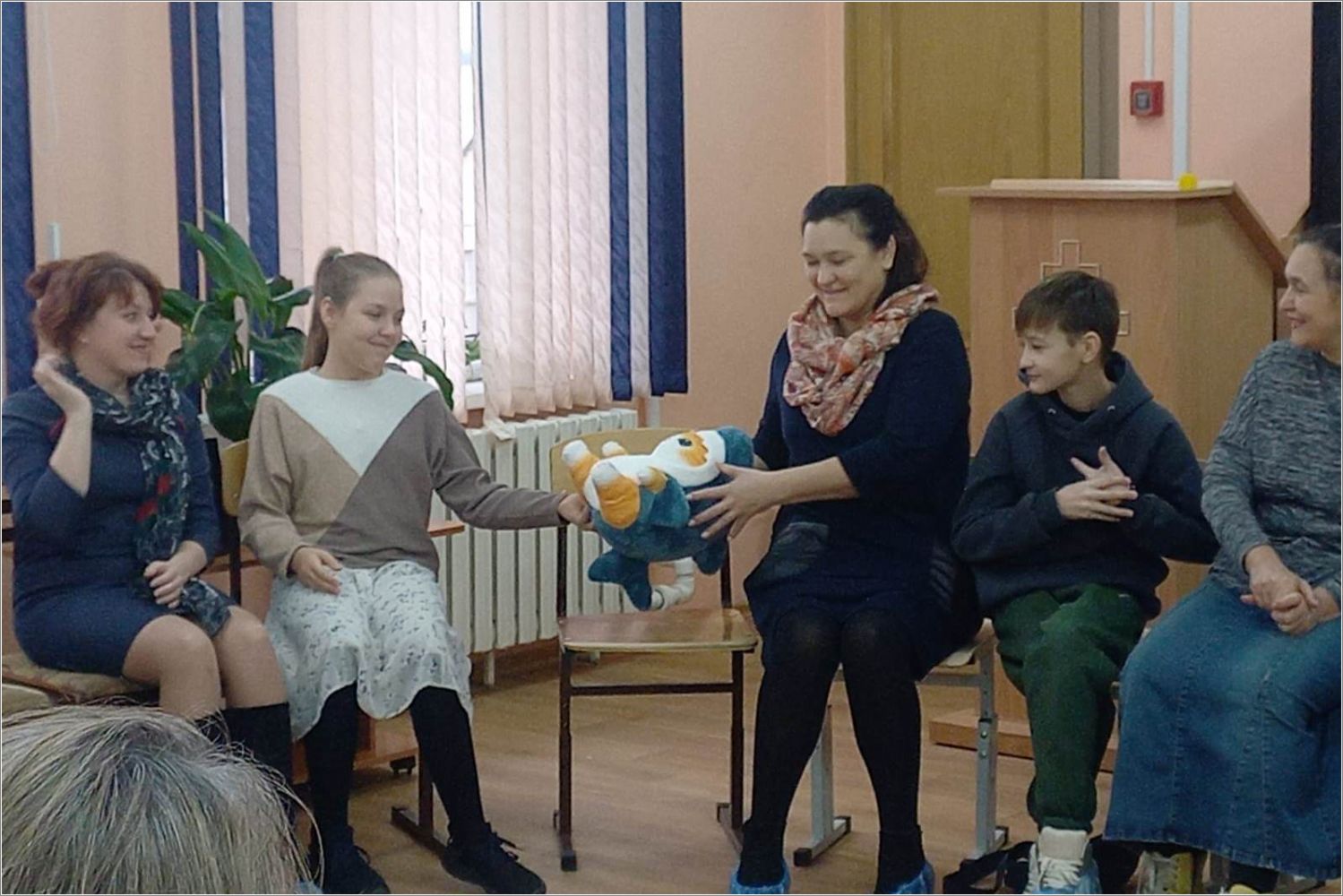 В группах «Веди» и «Глаголь» прошло необычное занятие, на которое были приглашены дети со своими мамами. Педагоги Ольга Волкова и Алена Апарина подготовили трогательные конкурсы, направленные на душевное общение матери со своим чадом, открытость и возможность произнести, глядя в такие родные глаза, то, что не мог сказать ранее. Взрослый и ребенок сели напротив, говорили комплименты и благодарили друг друга за совместные воспоминания и времяпрепровождение, подаренные радостные минуты и счастливые мгновения, потом передавали свечу по кругу, и вновь звучали добрые слова. Следующие конкурсы помогли узнать, кто кого знает лучше: мама и ребенок садились за стол и вместе отвечали на вопросы про любимые привычки и добрые дела, а затем передавали игрушку под музыку, и на ком она останавливалась, должен был назвать, как ласково его называет мама, а потом пробовали узнать друг друга по голосу.
