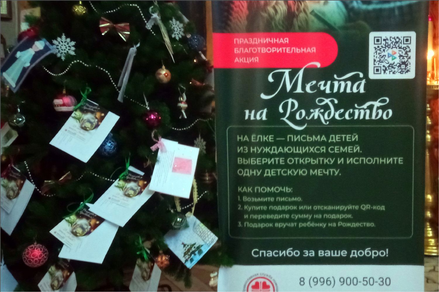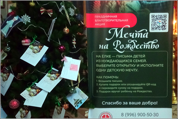 В храмах устанавливают ёлки, на которых развешаны письма. Любой желающий может снять письмо, узнать о мечте ребёнка и приобрести подарок. Также можно отсканировать QR-код, чтобы сделать пожертвование на подарок.