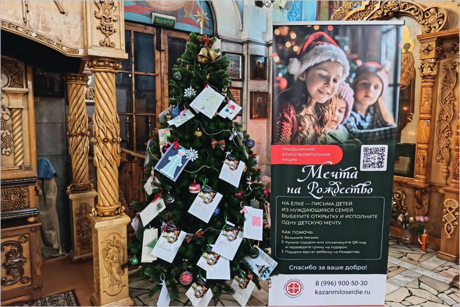 Акция «Мечта на Рождество» в Набережночелнинской епархии — это благотворительная инициатива, направленная на исполнение желаний детей из малообеспеченных, многодетных семей и семей с детьми-инвалидами. В рамках акции дети пишут письма святителю Николаю Чудотворцу с пожеланиями подарков, а участники могут исполнить эти мечты, сняв письмо с «ёлки желаний» в храмах или сделав пожертвование.