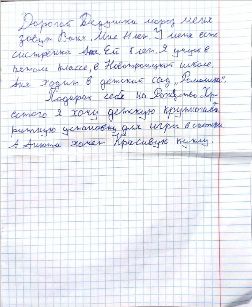 Позвонить по телефону: 8-996-900-50-30. По этому номеру можно узнать подробности, выбрать письмо для исполнения или сделать пожертвование.