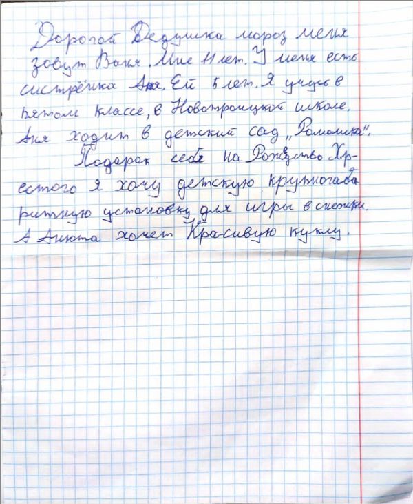 Ребята пишут святителю Николаю о своих заветных мечтах — это могут быть игрушки, конструкторы, наборы для творчества, спортивная экипировка и другие подарки. В письмах дети также выражают надежду на чудо и веру в то, что их просьбы будут исполнены.
