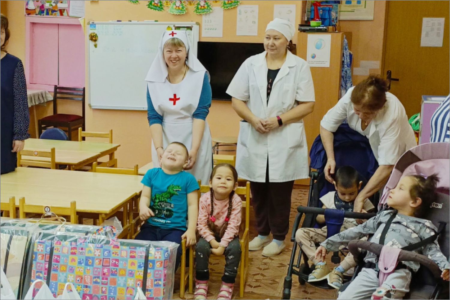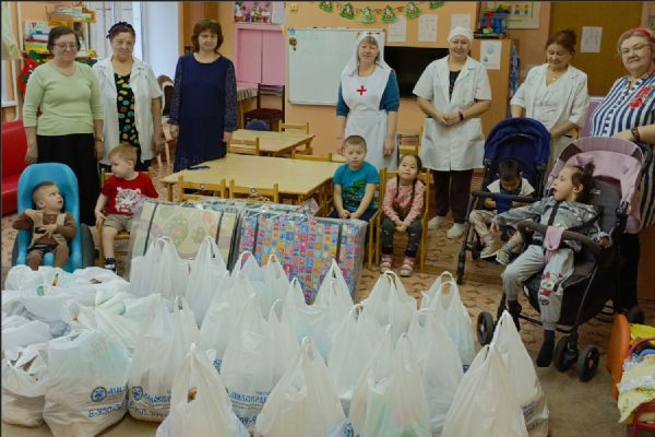 Настоятель храма преподобного Серафима Саровского иеромонах Амвросий (Степанюк), сестры милосердия Свято-Серафимовского сестричества и добровольцы, подготовили подарки к декаде инвалидов для детского сада «Алёнушка» города Набережные Челны.