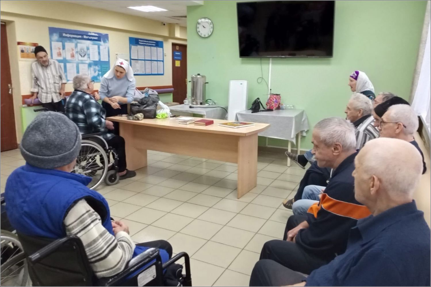 В этот же день сестры милосердия посетили Набережночелнинский дом-интернат для престарелых и инвалидов и передали 30 простыней на резинке и пироги для угощения проживающих.
