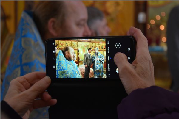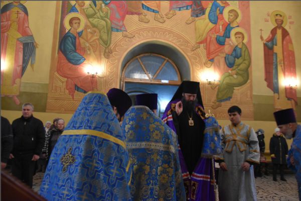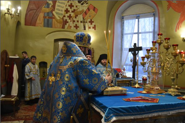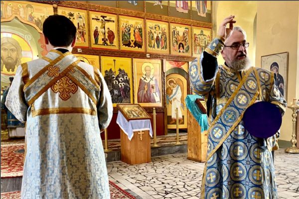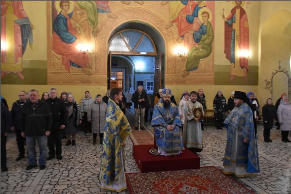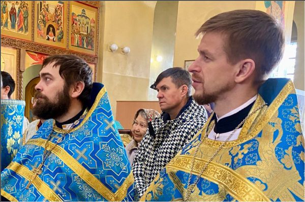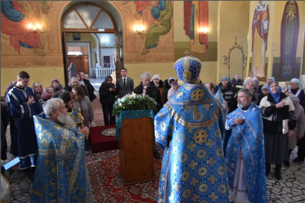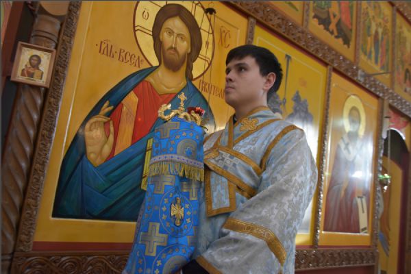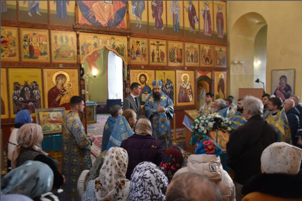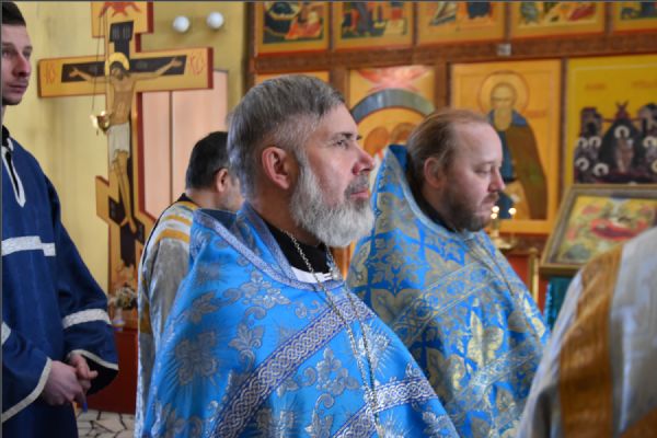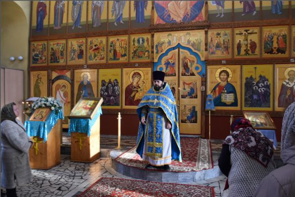 На мирной и сугубой ектениях были вознесены молитвы о Российском воинстве и о мире. Проповедь по запричастном стихе произнес иерей Даниил Кривов. По завершении службы было совершено славление Божией Матери.