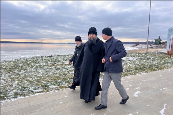 После того, как епископ Гавриил благословил прихожан, он, в сопровождении главы района, осмотрел благоустройство источника и набережной у храма Богоявления Господня.