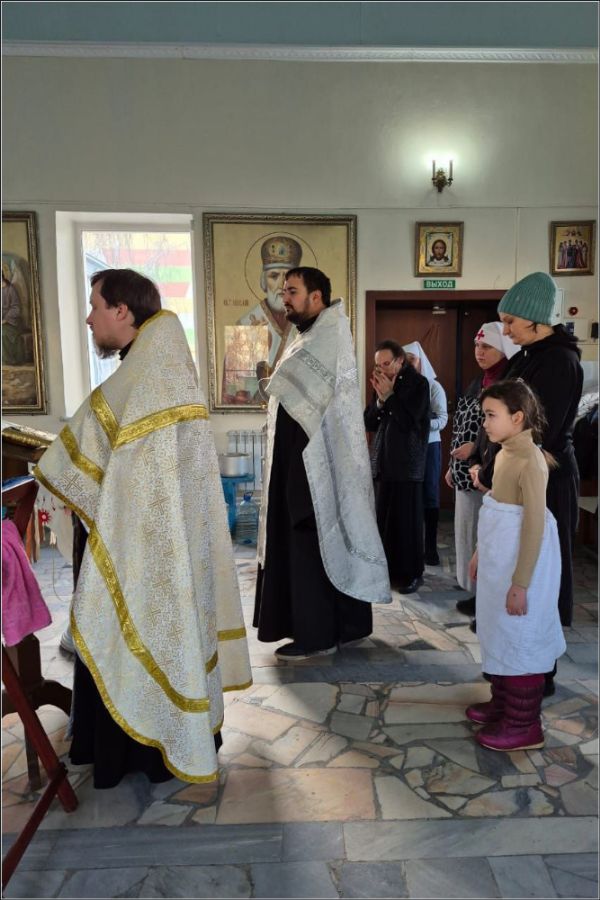 Таинство совершили два священнослужителя: настоятель храма святителя Тихона иерей Дионисий Васильев и клирик храма святых бессребреников Космы и Дамиана иерей Сергий Саутин. На богослужении молились мама девочки, с ее согласия и было совершено Таинство, и сестры милосердия сестричества преподобномученицы Варвары Алапаевской. После окончания всех священнодействий сестры поздравили маленькую христианку и вручили подарки.