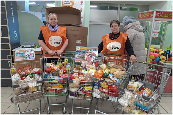 Вы можете купить и принести продукты длительного хранения (консервы, крупы, макароны, сахар, чай, масло) в специальные корзины, установленные в магазинах.