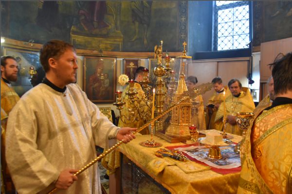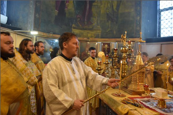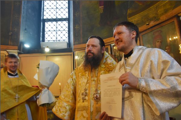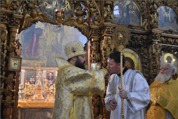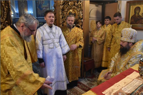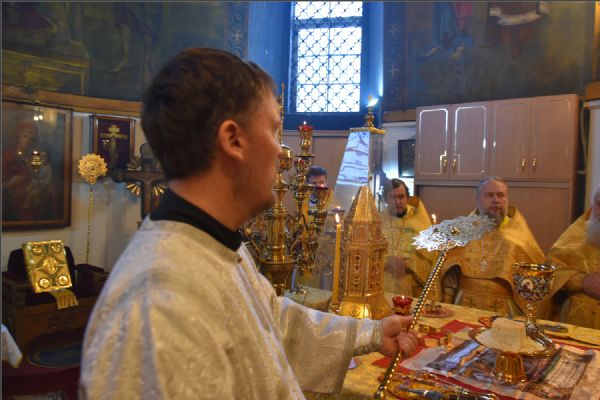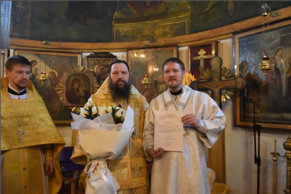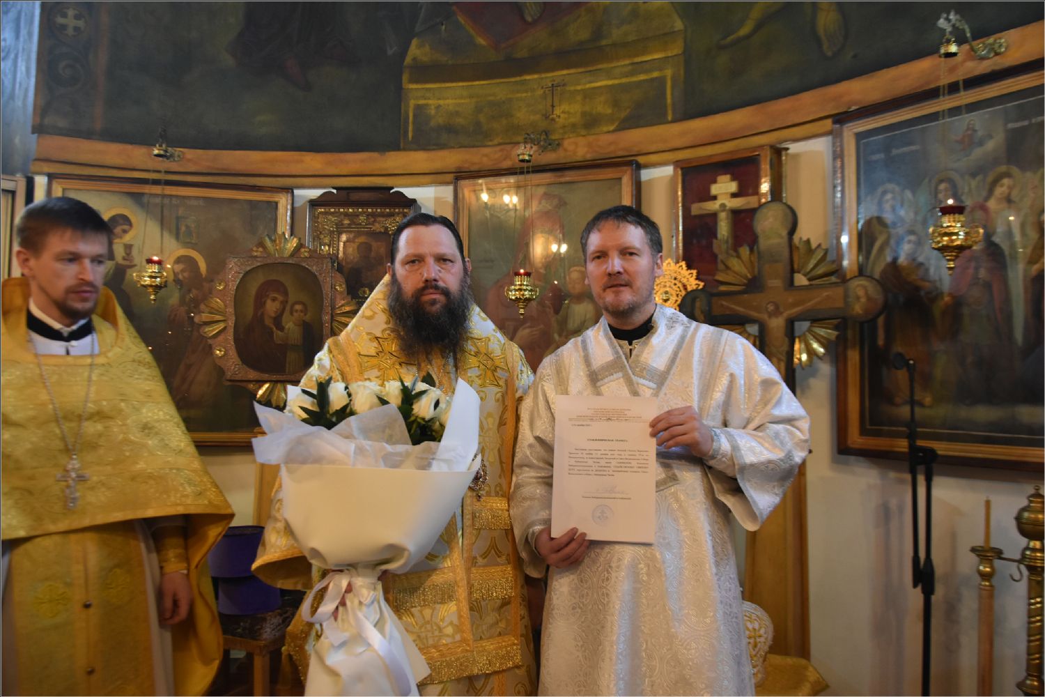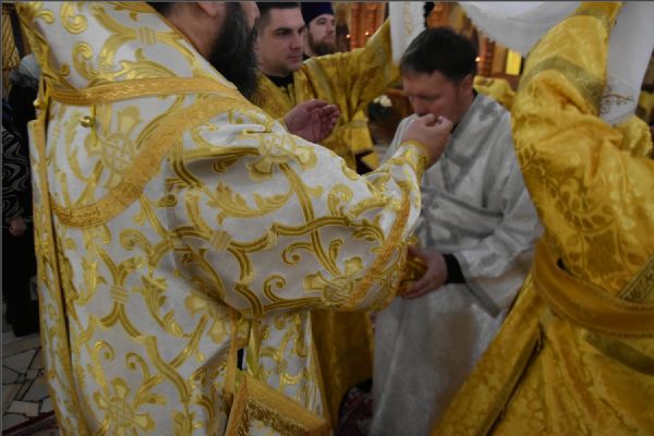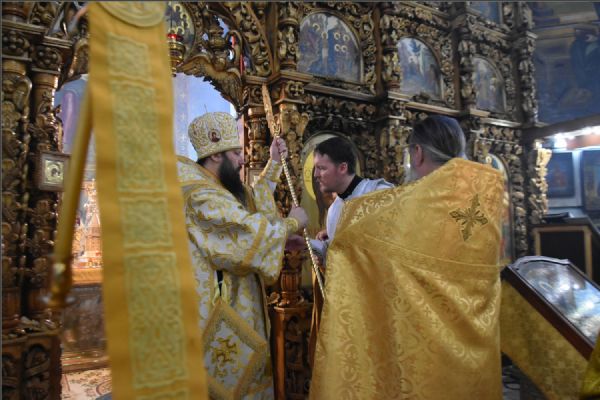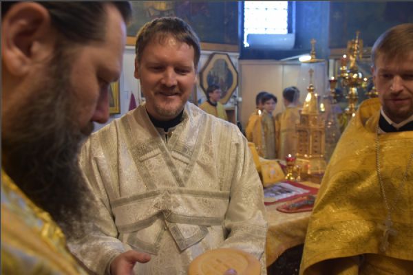 После Евхаристического канона была совершена хиротония иподиакона Антония Тренихина в диаконы. В своем слове архипастырь поздравил диакона Антония с рукоположением, вручил ему богослужебную просфору.