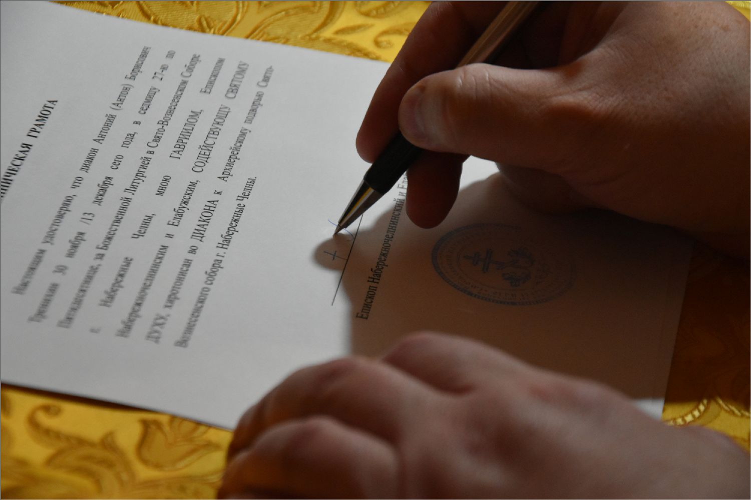 Свой сорокоуст молодой диакон будет проходить в Свято-Вознесенском кафедральном соборе и на архиерейских богослужениях. Клирик зачислен в штат кафедрального собора города Набережные Челны.