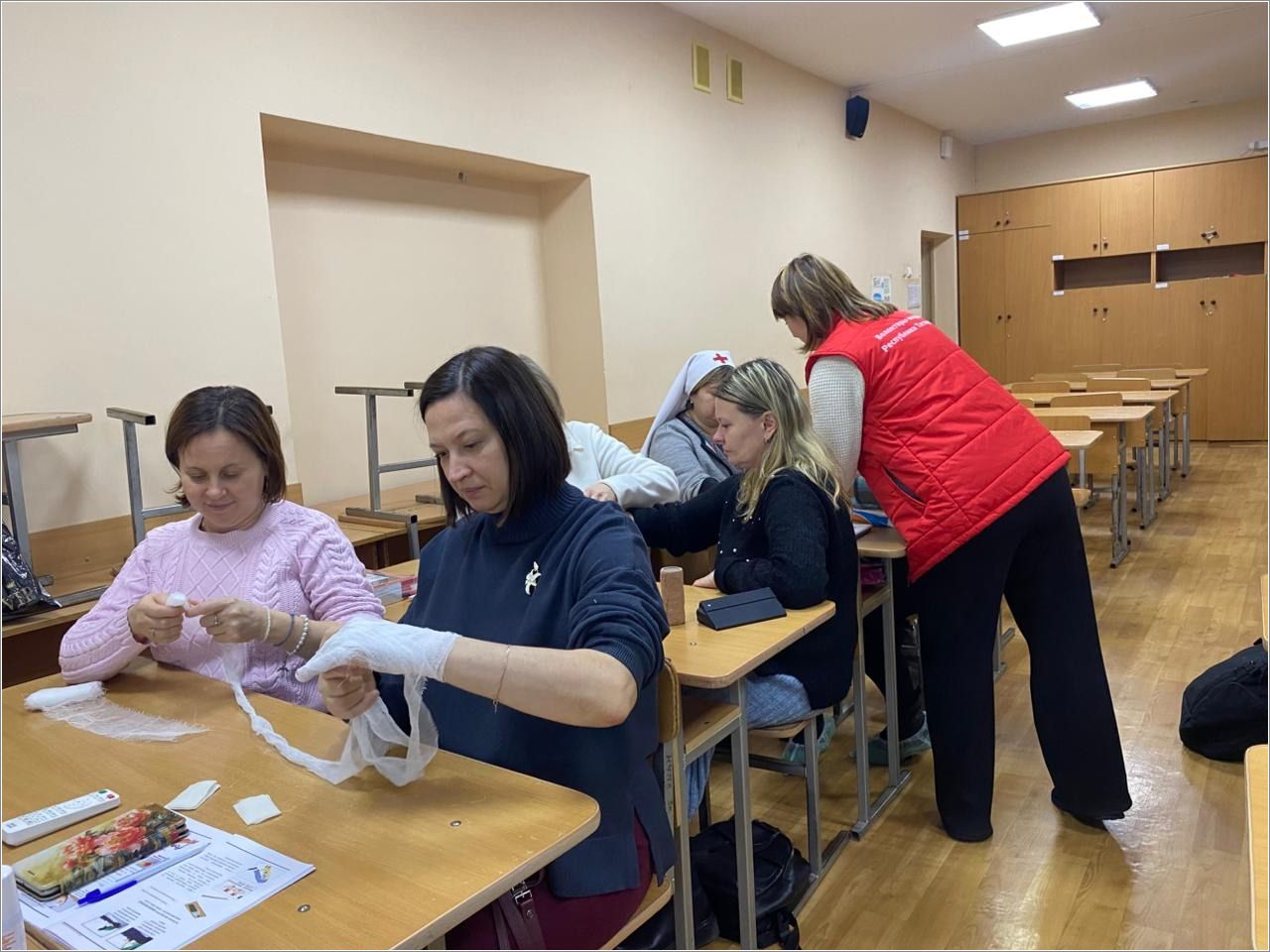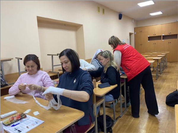 По благословению епископа Набережночелнинского и Елабужского Гавриила сестричества во имя преподобномученицы Великой Княгини Елизаветы Федоровны храма святых бессребреников Космы и Дамиана и преподобномученицы инокини Варвары Алапаевской прихода Тихона, Патриарха Московского и всея России, а также добровольцы и волонтёры проходят курсы по оказанию первой помощи, действующие два года на базе Набережночелнинского медицинского колледжа.